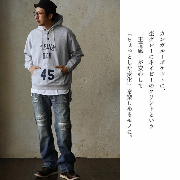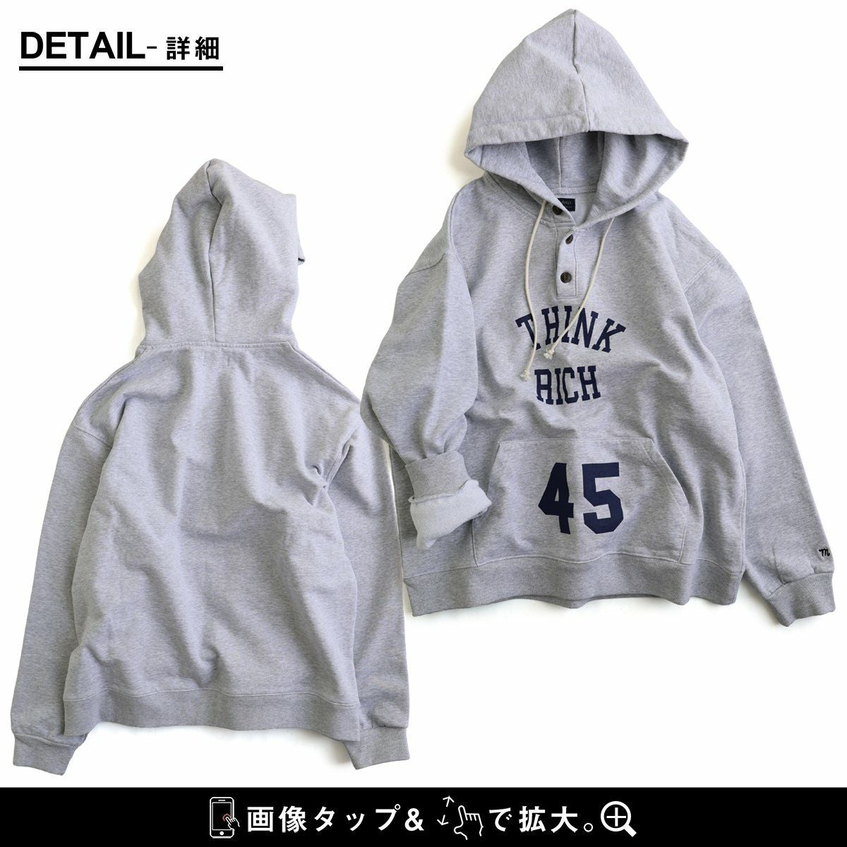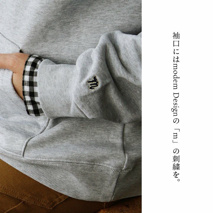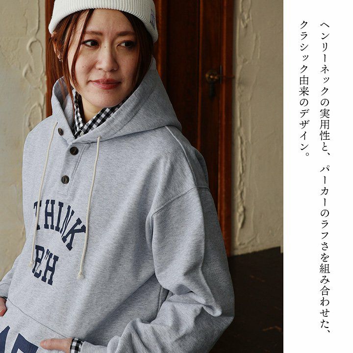 クラシック由来のデザインに、先の長い安心感と着やすさ。 パーカー 長袖 プルオーバー メンズ レディース ヘンリーネック フーディ 裏毛 スウェット ナンバリング プリント 刺繍 カジュアル アメカジ パティ modem Design モデムデザイン