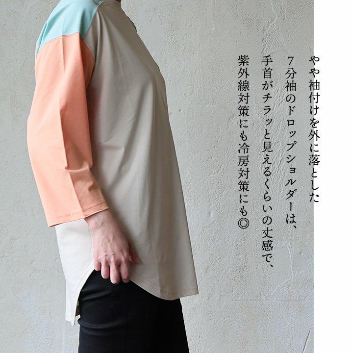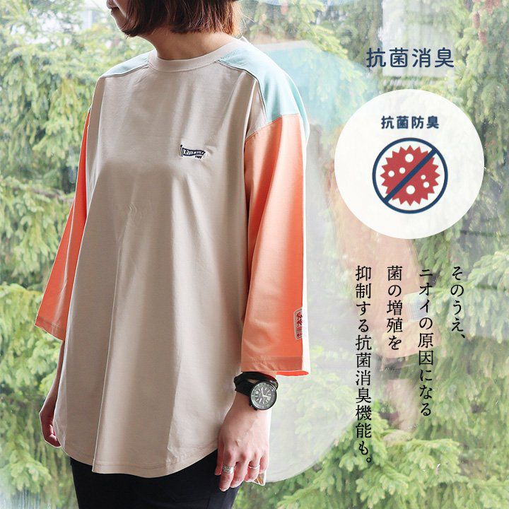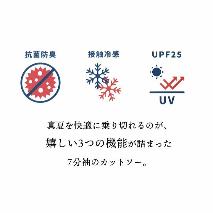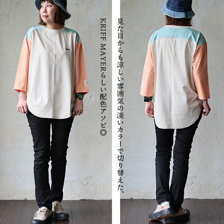 この見た目で、「UVカット」「接触冷感」「抗菌消臭」。 KRIFF MAYER クリフメイヤー Tシャツ カットソー 7分袖 レディース クルーネック 配色切り替え 接触冷感 抗菌消臭 UVカット 薄手 涼しい 通気性 ゆったり 着痩せ すっきり 大きいサイズ カジュアル 夏 パティ