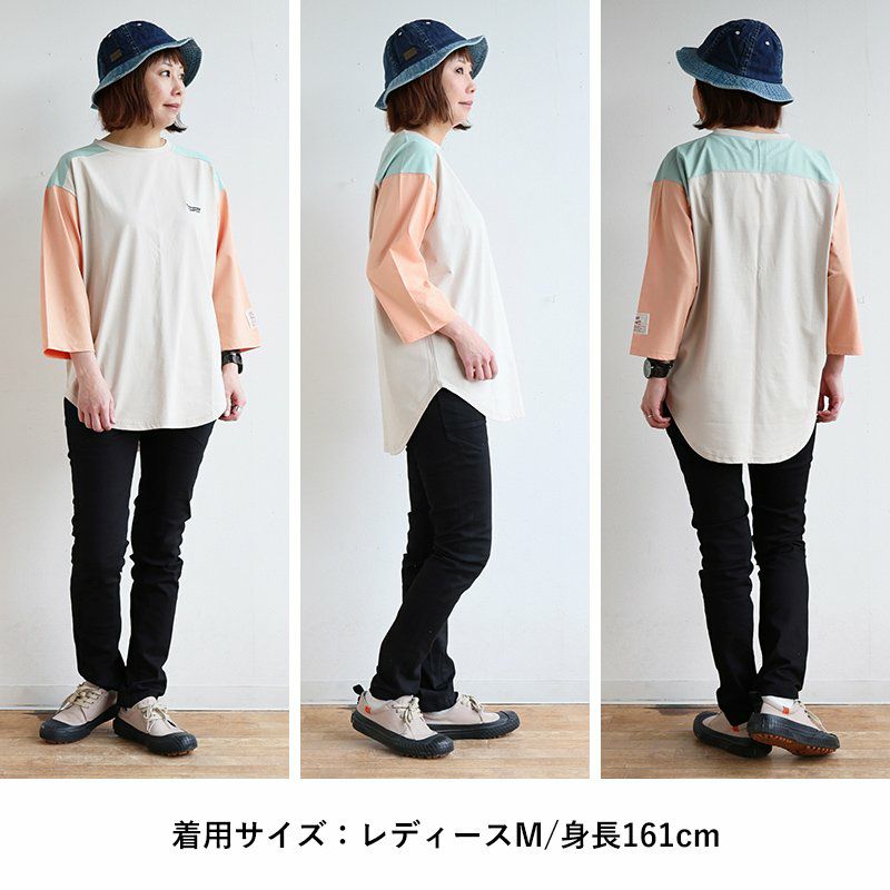 ここまで渋く大人に仕上げたモノは、かなり珍しい。 Johnbull ジョンブル Tシャツ 七分袖 メンズ レディース ベースボールTシャツ 日本製 コットン 綿100 製品染め 退色加工 褪せ色 ヴィンテージ カジュアル アメカジ パティ