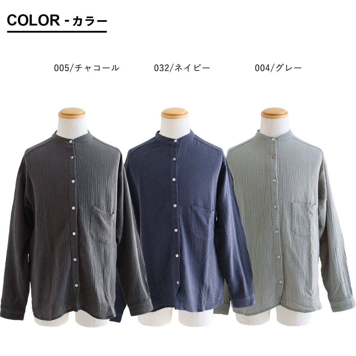 ふんわり、きちんと。大人の余裕シャツ。 シャツ 長袖 メンズ レディース ダブルガーゼ スタンドネック 綿100 コットン 春 すっきり 着やせ ワイド シームポケット 大きいサイズ ゆったり お尻 体系 カバー 吸湿 速乾 通気性 軽い 軽量 オフィス カジュアル パティ SAIL セイル