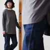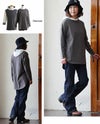 薄手でややドライな質感のコットン天竺地。サラっとした質感で柔らかさもあり、横・斜め方向に自然な伸縮性があり、光にかざすと透け感があります。