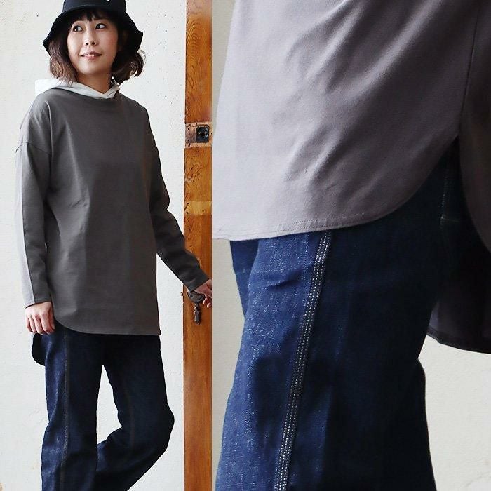 重ね着が苦手だとしても、ゆるトップスの下には絶対コレ! 【メール便50】 重ね着 インナー 長袖 レディース ロンt シャツ カットソー ロング ロング丈 ラウンドヘム ストレッチ しっかり 丈夫 ポリエステル コットン レイヤード おしゃれ ゆったり トップス 無地 薄手 体型カバー 春 30代 40代 50代 60代 パティ Souple スプル