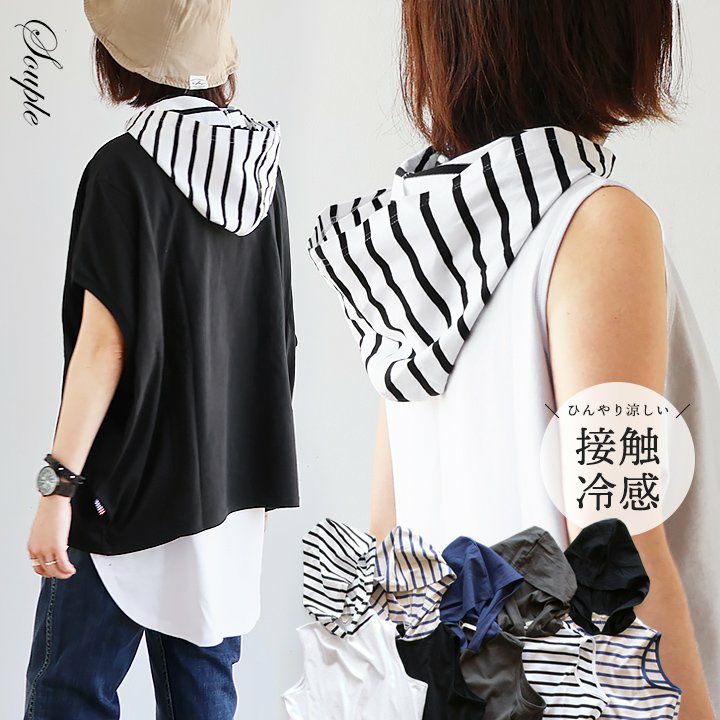重ね着が苦手だとしても、ゆるトップスの下には絶対コレ! 【メール便50】 重ね着 タンクトップ レディース ロング丈 クレイジー 着ぶくれない 胸が見えない 薄手 吸水 綿 しっかり 丈夫 コットン 伸びる 軽やか フード付き ワイド 胸元 ブラ紐 お尻 カバー パティ Souple スプル