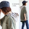 【モデルコメント】中は、タンクトップくらいが良いですね。程好くゆとりを持って着れましたよ。 【客観的コメント】お尻はすっぽりと隠れる着丈の長さです。バランスの良いシルエットで着れていましたね。