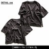 程よく厚みがあり、ガシっとした質感の綿100%の天竺地です。ややドライな質感で軽く、編地による伸縮性がややあります。光にかざすと若干の透け感があります。
