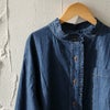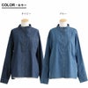 「フリル」なのに、甘くならずにカッコいい。 シャツ ブラウス 長袖 レディース デニム デニムシャツ スタンドカラー ミニフリル付き フリルシャツ 前開き ライトオンス ポケット お尻 隠れる パティ Souple スプル