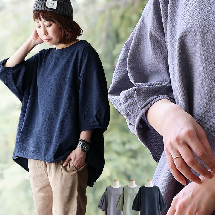 ピカイチな「涼しさ」「カバー力」「解放感」。 【メール便50】 カットソー 7分袖 レディース ドルマン ワイド シアサッカー ドライタッチ 涼しい 軽い 落ち感 着痩せ 細見え UV 無地 お尻 隠れる カジュアル シンプル おしゃれ 夏 パティ Souple スプル
