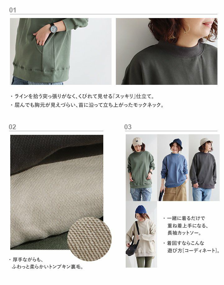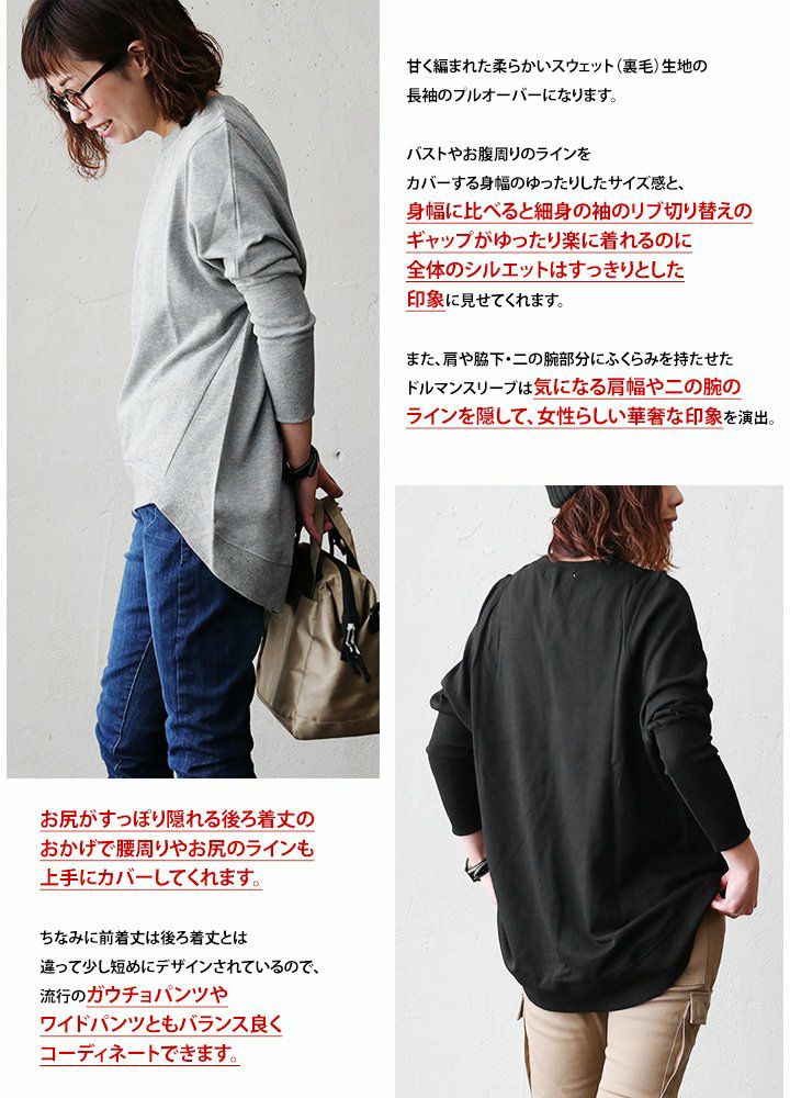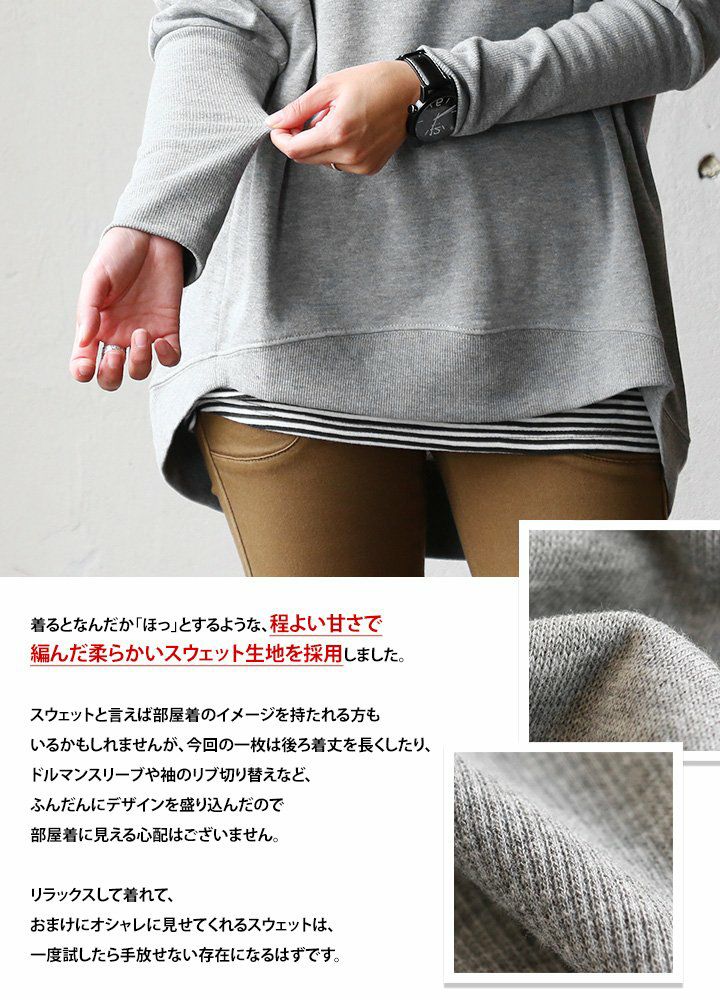 他の画像を見る ほどよい厚みとゆるさが心地いい。毎日着たくなるトレーナー! 身幅たっぷり トレーナー レディース スウェット 春 着痩せ ワイド 重ね着 綿100 コットン 裏毛 柔らか 体系 お尻 カバー スリット 長袖 プルオーバー ラグラン カジュアル パティ Souple スプル 2~3日でお届け 販売価格 ¥ 4,290 税込 在庫切れ カートに入れる お気に入りに登録する