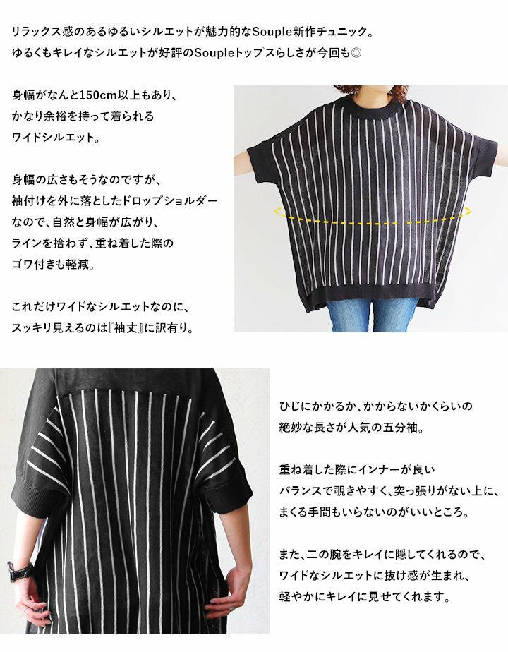 他の画像を見る ゆるいのに、締まってカッコイイなんて。 (スプル) Souple 五分袖 チュニック カットソー プルオーバー ワイド 『綿麻 ストライプ サマーニット』 販売価格 ¥ 4,290 税込 在庫切れ 詳細を見る お気に入りに登録する