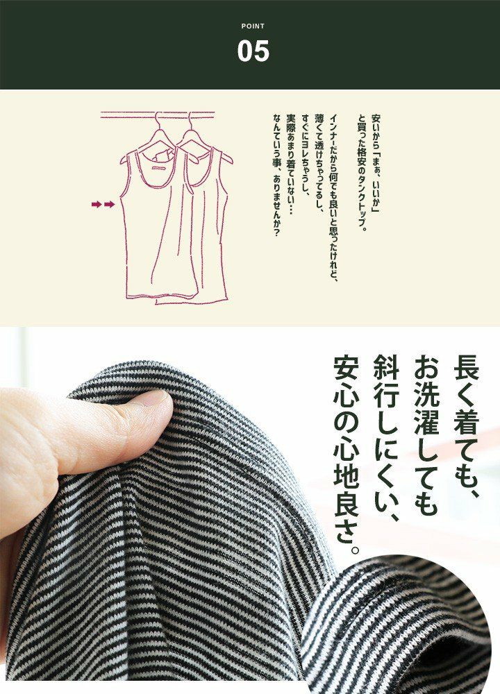 他の画像を見る ズレない・見せない。後ろ姿もおしゃれな「安心タンク」。 【メール便25】 バッククロス タンクトップ レディース 胸元 カバー インナー 綿100% コットン 日本製 ロング丈 ロングタンク キャミ 黒 大きいサイズ 肌着 下着 春 夏 秋 冬 ノースリーブ 無地 ヨガ PATY パティ Souple×gem closet スプル×ジェムクローゼット[メール便25] 2~3日でお届け 販売価格 ¥ 1,980 税込 在庫切れ 詳細を見る お気に入りに登録する