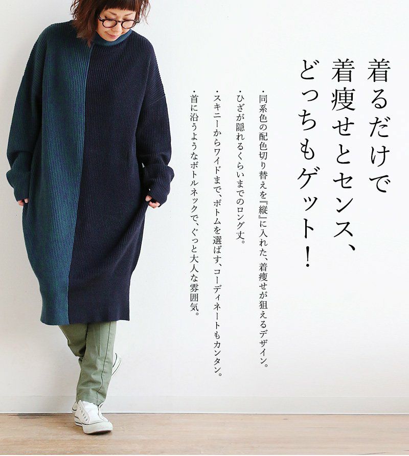 他の画像を見る 暖かいし、着痩せするし、悩まない。これは頼もしい! (スプル) Souple ワンピース ロング丈 ニット ボトルネック 「着痩せ 配色 切り替え」 アクリル100% 販売価格 ¥ 6,490 税込 在庫切れ カートに入れる お気に入りに登録する