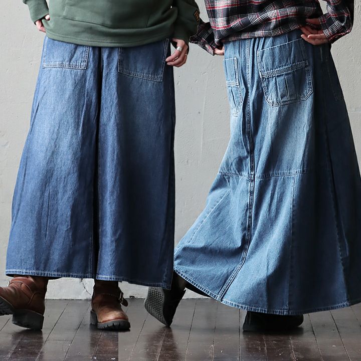 同じモノを穿いている人を、今のところ見ていません。 ガウチョパンツ ワイドパンツ レディース スカートパンツ ノンストレッチ デニム 8オンス ベイカーポケット マキシ丈 ウエストゴム ゆったり 着痩せ 楽ちん お洒落 BLUETO ブルート