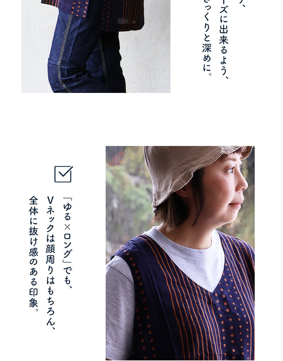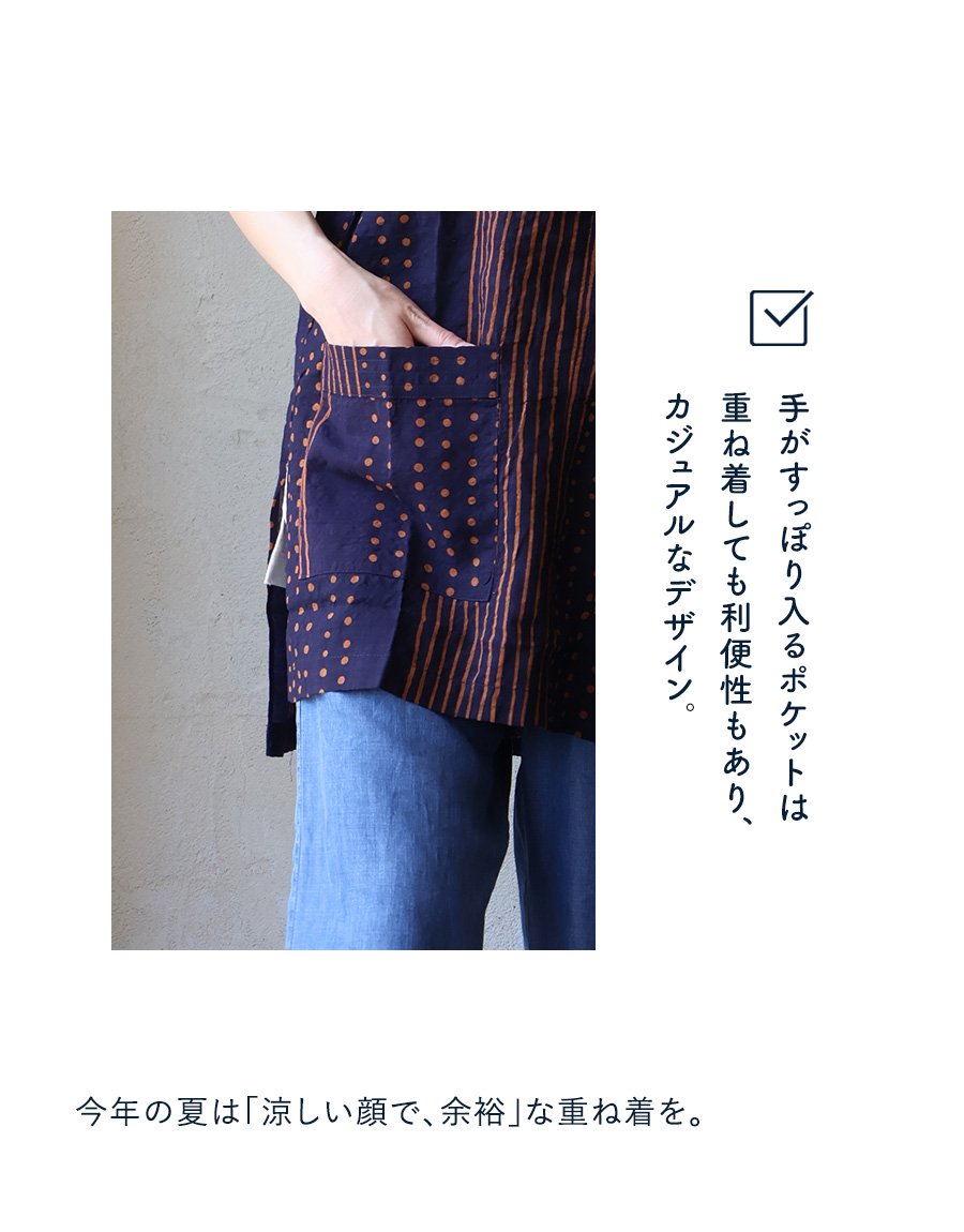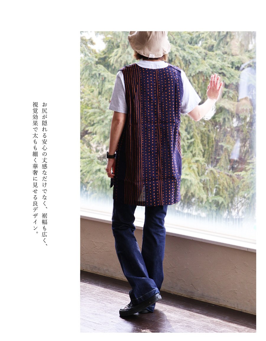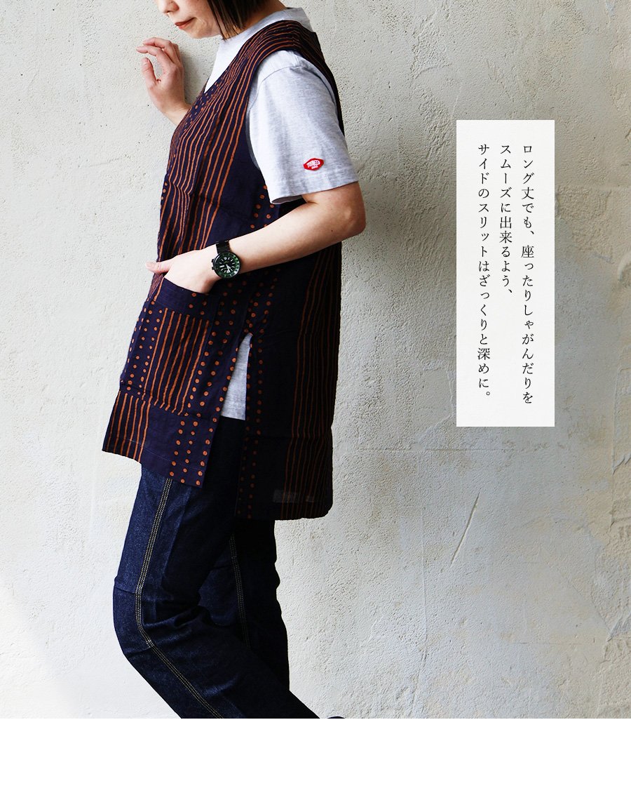 「涼しい顔で、余裕」な重ね着を。 【メール便50】 着痩せ ベスト Vネック レディース 重ね着 ワイド 涼しい 綿100 コットン 薄手 軽い すっきり ロング丈 サイドスリット ポケット お尻 体系 カバー 大人 カジュアル パティ BLUETO ブルート