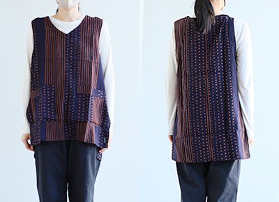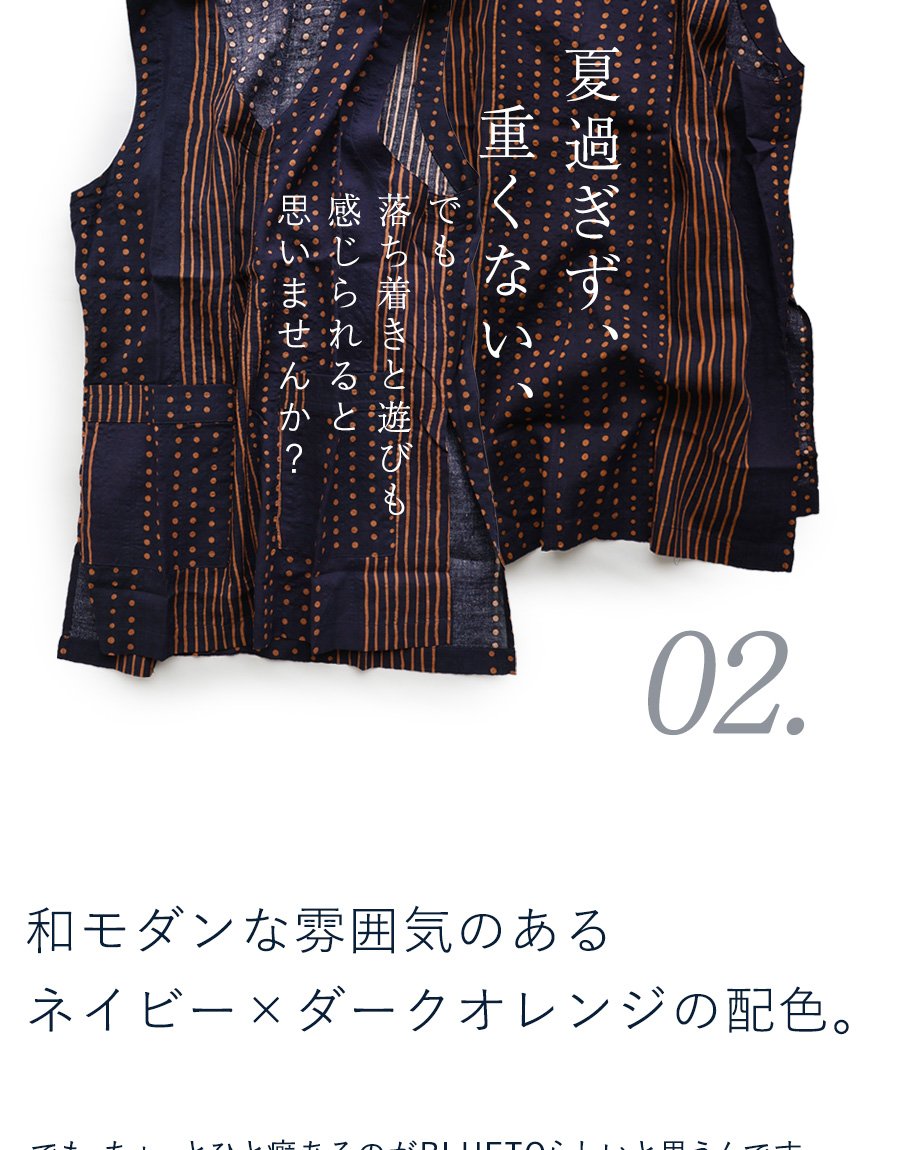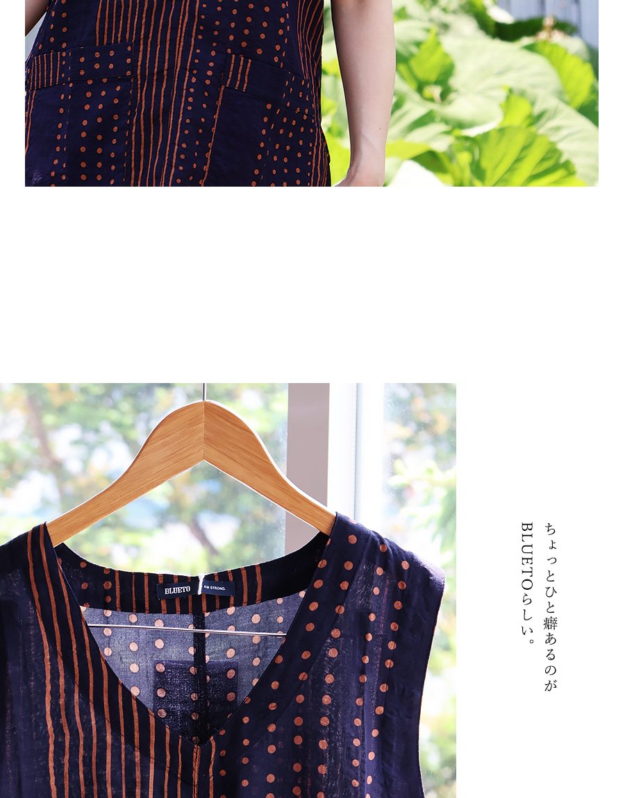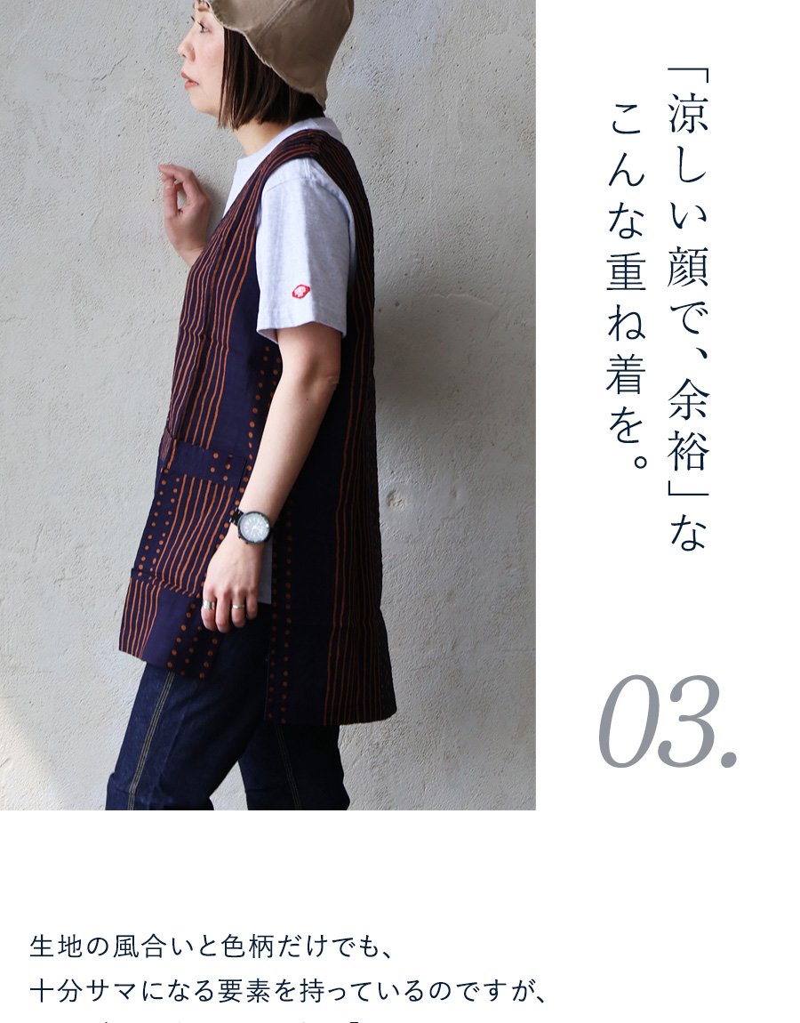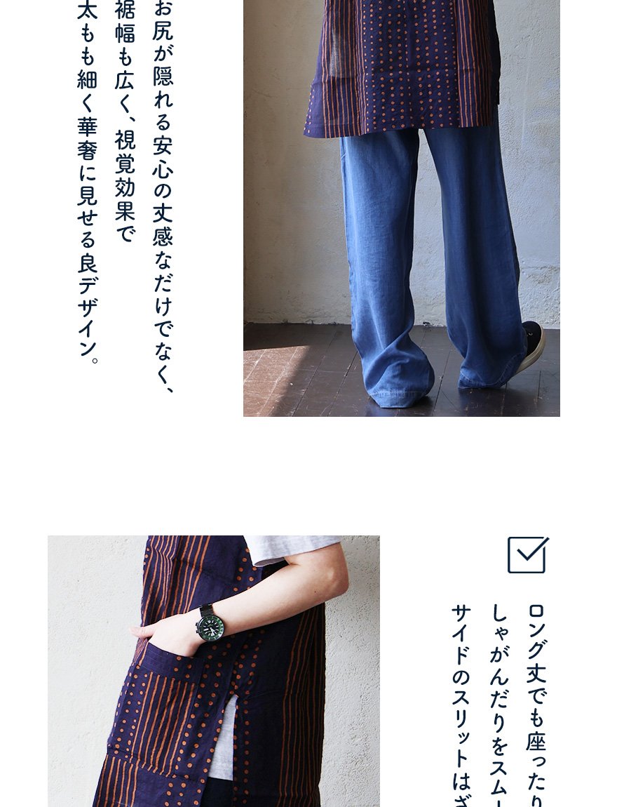 「涼しい顔で、余裕」な重ね着を。 【メール便50】 着痩せ ベスト Vネック レディース 重ね着 ワイド 涼しい 綿100 コットン 薄手 軽い すっきり ロング丈 サイドスリット ポケット お尻 体系 カバー 大人 カジュアル パティ BLUETO ブルート