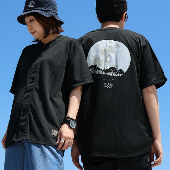 ブルートムーン/満月 涼しい ベースボールシャツ 半袖 5分袖 メンズ レディース 夏 ドライ UVカット 吸汗 伸縮性 軽い 満月 プリント すっきり 着痩せ 落ち感 大人 カジュアル パティ BLUETO ブルート