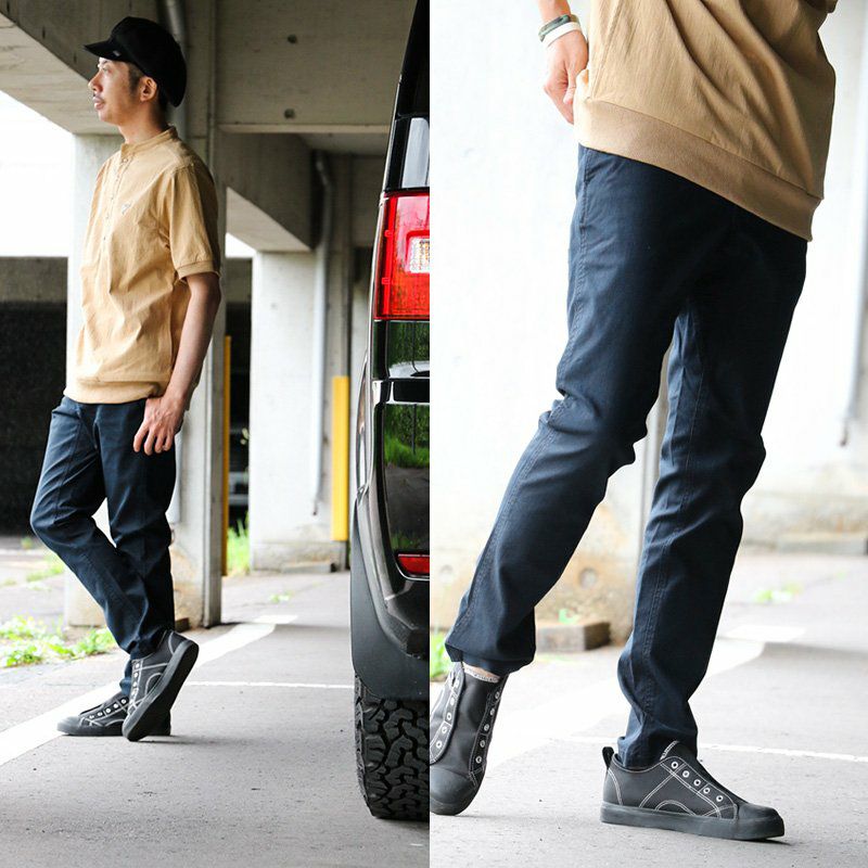 かつくらいの体型でもMサイズは穿けなくはないね。ただ、全体的にピタッとしたフィット感はあって、脚のラインも出やすいサイジングだったよ。細身にスキニー感覚で穿きたいならありかなって感じだね。