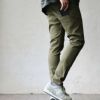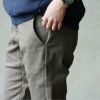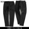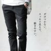 しっかりと目の詰まった肉厚なツイル地で、やや目の粗さやガシっとした硬さがあるのですが、ストレッチ入りで穿くとしなやかにフィットする独特の質感。ぐんっと伸縮性があり、キックバック性(戻る力)も強い生地です。透け感はありません。