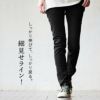 しっかりと目の詰まった肉厚なツイル地で、やや目の粗さやガシっとした硬さがあるのですが、ストレッチ入りで穿くとしなやかにフィットする独特の質感。ぐんっと伸縮性があり、キックバック性(戻る力)も強い生地です。透け感はありません。