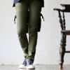 【モデルコメント】骨盤穿きました。全体的に程好くゆとりがあります。中は、レギンスくらいは合わせやすそうなゆとりがあって、穿くならこのサイズで不満はありませんね。 【客観的コメント】かかとは半分くらい隠れる丈の長さです。キレイなシルエットで穿けていましたね。