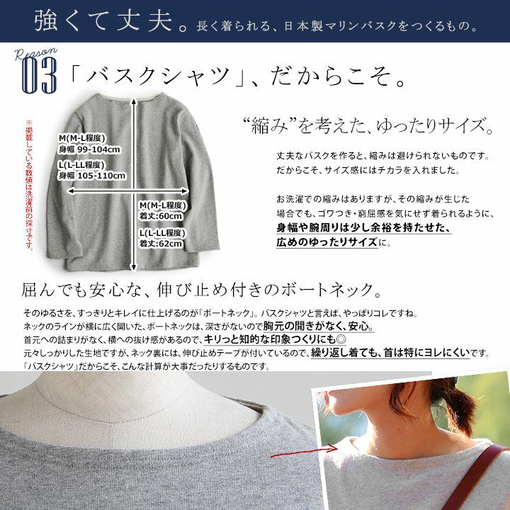 他の画像を見る 強くて丈夫。長く着られる『日本製』長袖バスク。 (セイル) SAIL 長袖 カットソー バスクシャツ コットン 無地 ボートネック 日本製 SAIL 40代 50代 販売価格 ¥ 5,170 税込 在庫切れ 詳細を見る お気に入りに登録する