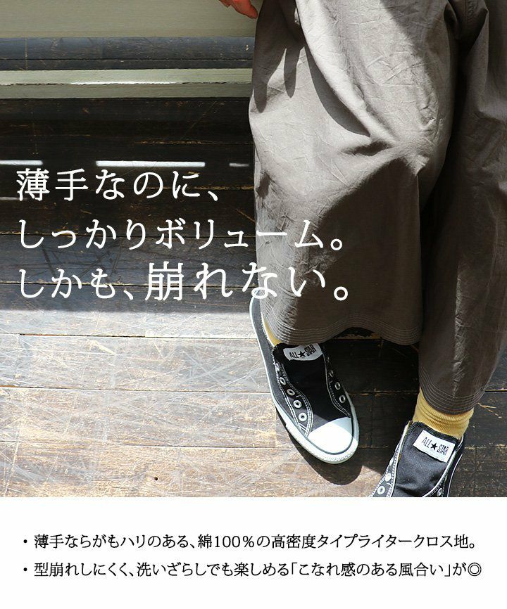 他の画像を見る 薄手なのに、しっかりボリューム。しかも、崩れない。 (セイル) SAIL ガウチョパンツ ワイド ロング丈 綿100% 薄手 タイプライタークロス ウエストゴム 紐 販売価格 ¥ 6,600 税込 在庫切れ カートに入れる お気に入りに登録する