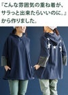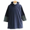 中はスウェットが着れる余裕がありました。お尻がすっぽり隠れる着丈で手のひらの上3~5センチぐらいの袖丈です。ゆとりがありますね。チュニックシルエットです。動作は問題なくできました。