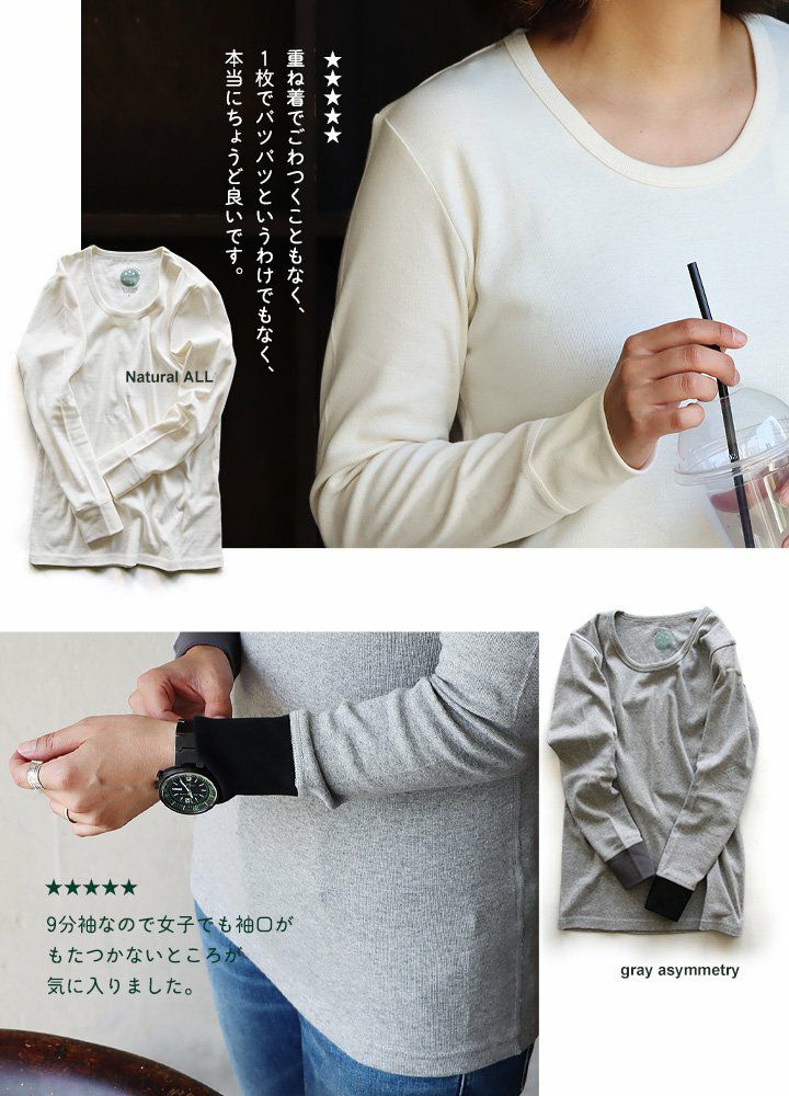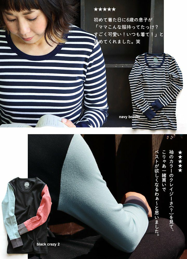 他の画像を見る 家事も仕事も1枚でも重ね着でも、すっきり楽々! 【メール便50】 カットソー 長袖 9分袖 ロングtシャツ 重ね着 すっきり フィット 着痩せ しっかり 丈夫 ストレッチ 柔らかい レディース メンズ 綿100% コットン ロンT インナー トップス tシャツ ロング丈 クレイジー 配色 リブ トップス 洗濯に強い パティ PATY パティ 2~3日でお届け 販売価格 ¥ 3,729 税込 カートに入れる お気に入りに登録する