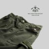 OAR'Sの刻印の入ったタブは、オリーブ生地と相性のよいPUレザー。リメイクのような雰囲気も出て、良い味に。