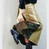 【モデルコメント】中は、ロング丈と変わりません。ただ、丈が長くなった分、脚の出る範囲も少なくなり、安心して着れましたね。 【客観的コメント】ふくらはぎはほとんど隠れるくらいの丈の長さです。バランスの良いシルエットで着れていましたね。