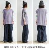【モデルコメント】骨盤で穿きました。このサイズも全体的にタップリゆとりがあって、丈が大分長かったですね。穿いた感じは変わらないので、ロング丈を選びますね。 【客観的コメント】この丈も裾上げした方がバランス良く穿けそうでした。