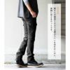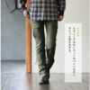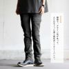 本体:しっかりと目の詰まった肉厚なツイル地で、ガシっとした硬さがあるのですが、ストレッチ入りで穿くとしなやかにフィットする独特の質感。加工による褪せたユーズド感のある風合いで、ぐんっと伸縮性があり、キックバック性(戻る力)も強い生地です。透け感はありません。