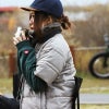 【モデルコメント】中は、トレーナーも合わせやすそうなゆとりがあります。しっかりとゆとりがありましたね。 【客観的コメント】お尻はほとんど隠れる着丈の長さです。ゆったりとした感じで着たいなら、選んでも良さそうなサイジングですね。