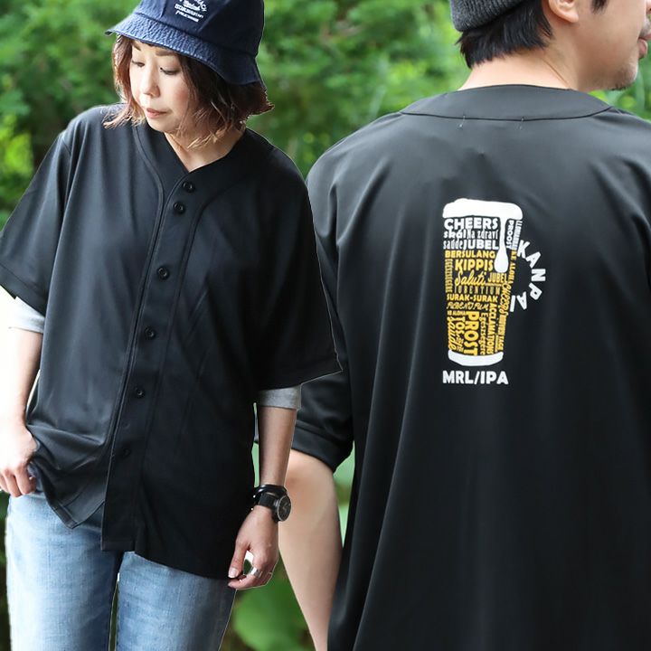 汗をかいても変わらず快適!「ドライアスレチック」。 涼しい tシャツ ベースボールシャツ 半袖 メンズ レディース 夏 ドライ UVカット 吸汗 伸縮性 ビール プリント すっきり ボックスシルエット 大人 カジュアル パティ Mr.Lumberjack ミスターランバージャック