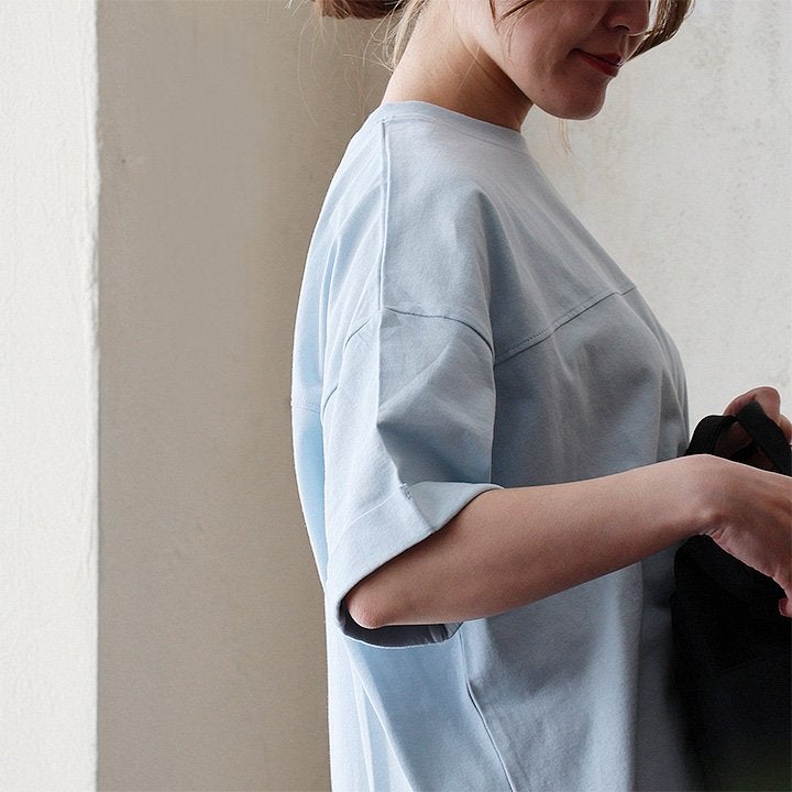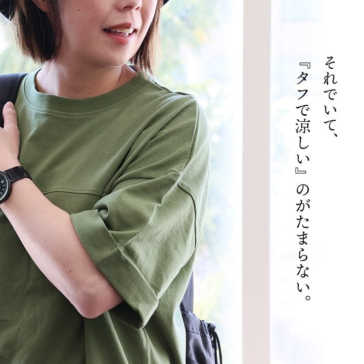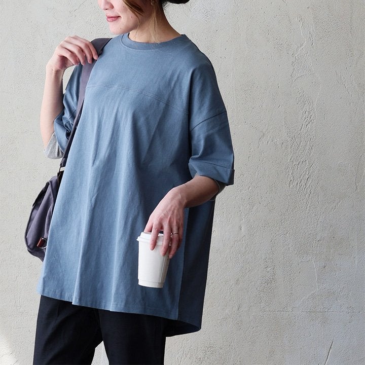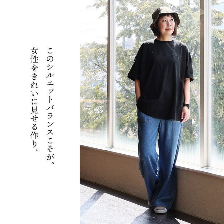 この「変なカタチ」が、オフィスでも自信をくれました。 【メール便50】 着痩せ ドルマン tシャツ レディース 半袖 しっかり 綿100% USA コットン ビッグシルエット ワイドシルエット ゆったり 甘くない 二の腕 カバー 春 夏 ティーシャツ クルーネック 半袖tシャツ 型崩れ しにくい 大人 カジュアル パティ Souple スプル