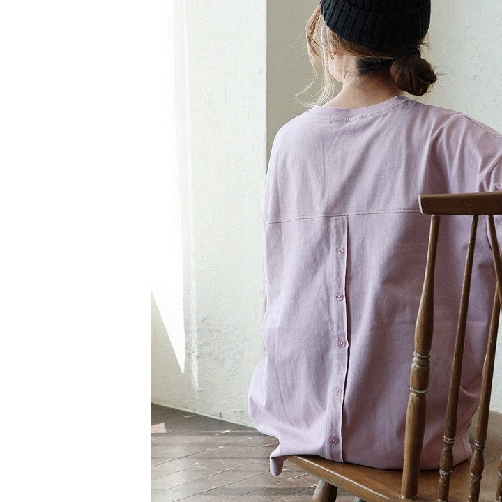 ちょうどいい感じに、きちっと、ゆるっと。 【メール便50】 着痩せ チュニック レディース 袖リブ 長袖 シャツ カットソー すっきり ワイド ボートネック 春 コットン 綿100 薄手 軽い お尻 隠れ カバー ラインを拾わない 背中ボタン カジュアル パティ SAIL セイル