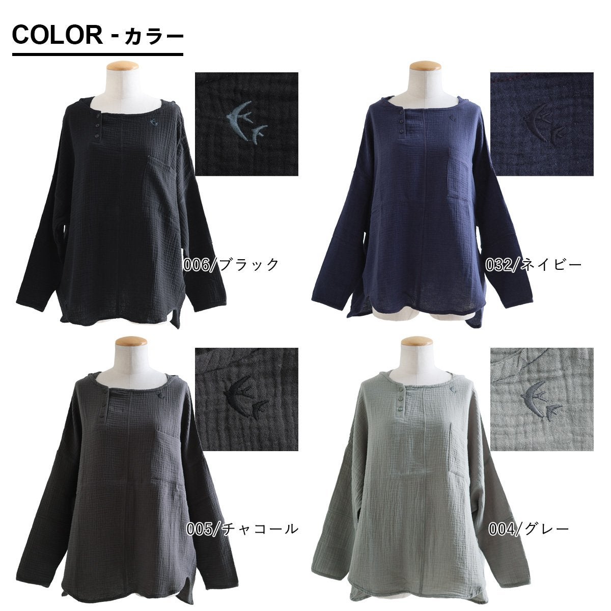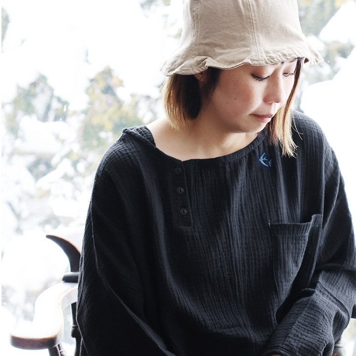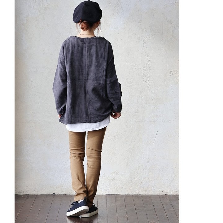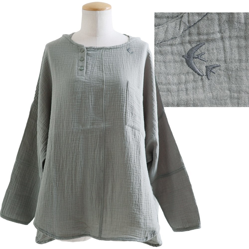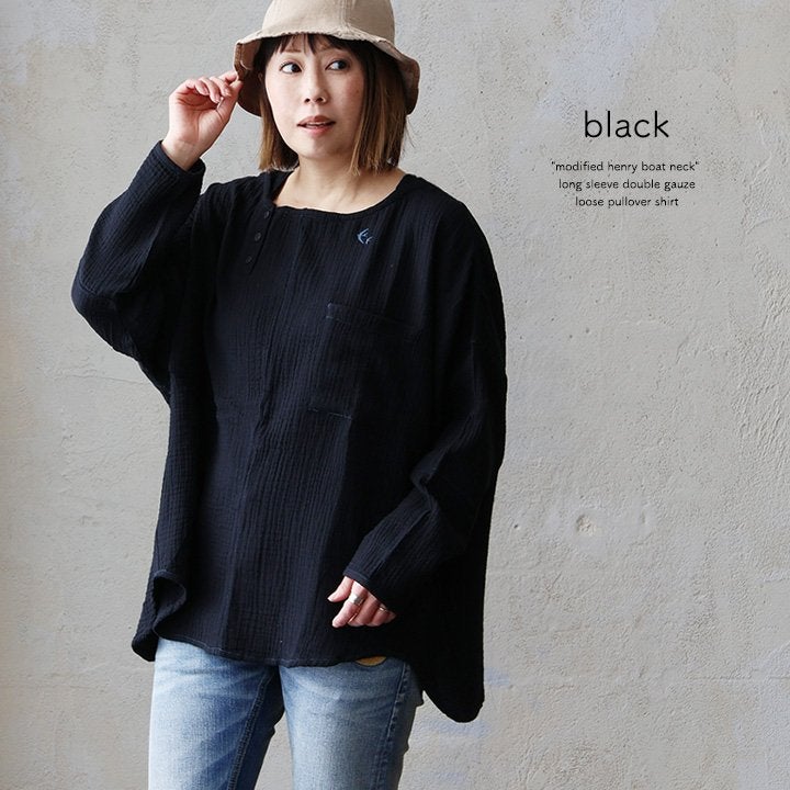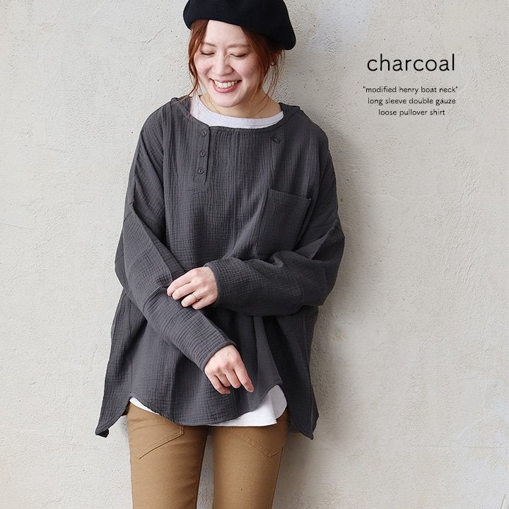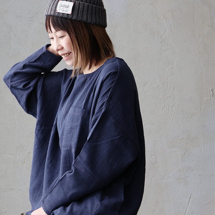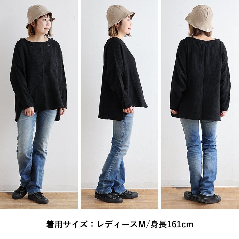★★★★★ 中毒性のある楽さと、スッキリ感。 シャツ 長袖 プルオーバー ダブルガーゼ レディース 綿100 コットン 春 すっきり 着やせ ワイド ドルマンスリーブ ボートネック 切り替え 大きいサイズ ゆったり お尻 体系 カバー 吸湿 速乾 通気性 軽い 軽量 カジュアル パティ SAIL セイル