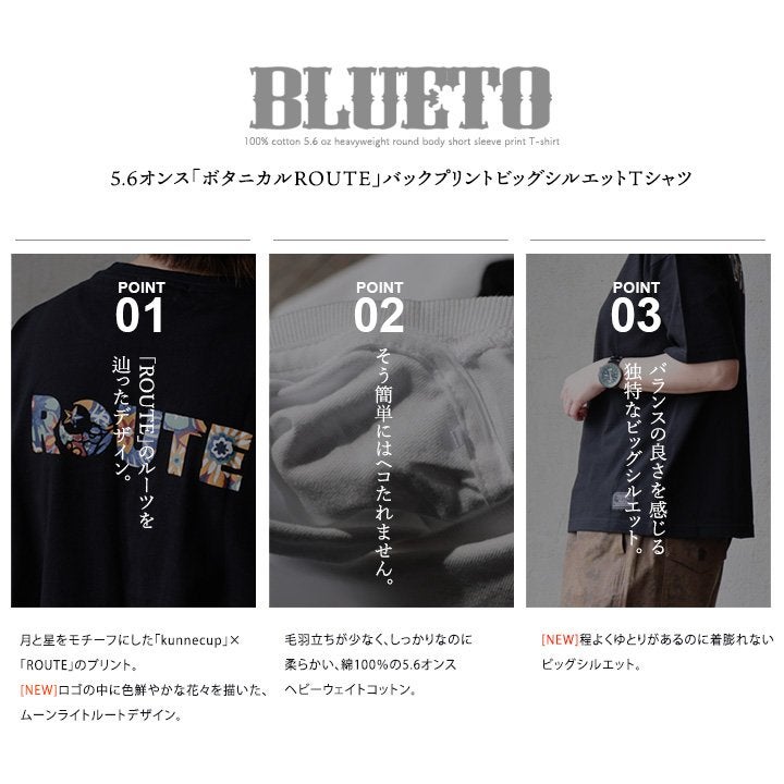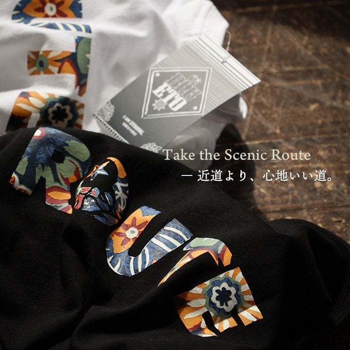Take the Scenic Route ― 近道より、心地いい道。 【メール便50】 tシャツ メンズ レディース 半袖 ワイド 着痩せ しっかり 丈夫 綿100% コットン ロゴ バックプリント レトロ 花 月 星 ティーシャツ 夏 重ね着 かっこいい 大人 カジュアル パティ BLUETO ブルート 【メール便50】 BLUETO ブルート