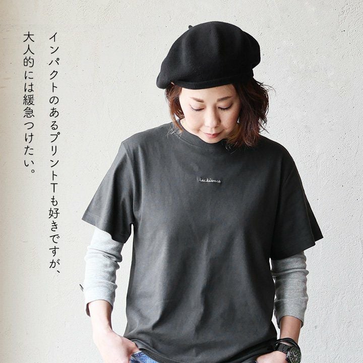 心にまで安心感をくれる「カバー」Tシャツ。 【メール便50】 Tシャツ 5分袖 レディース クルーネック ワイド 着痩せ すっきり バック プリント コットン 綿100% 薄手 涼しい 軽い 伸縮性 ゆったり 体型カバー 大きいサイズ カジュアル 夏 パティ Souple スプル