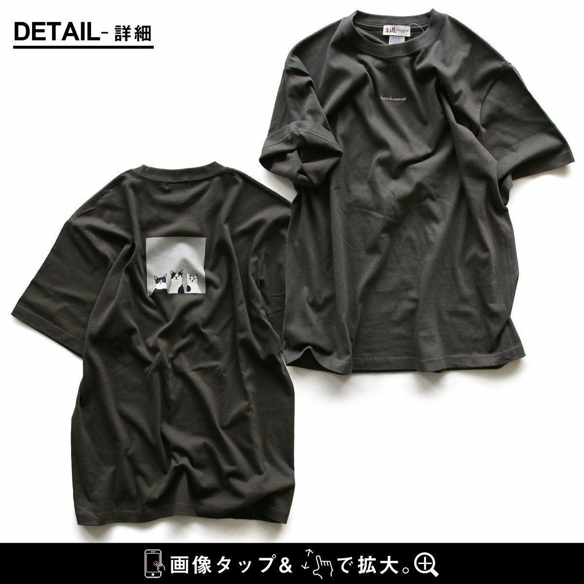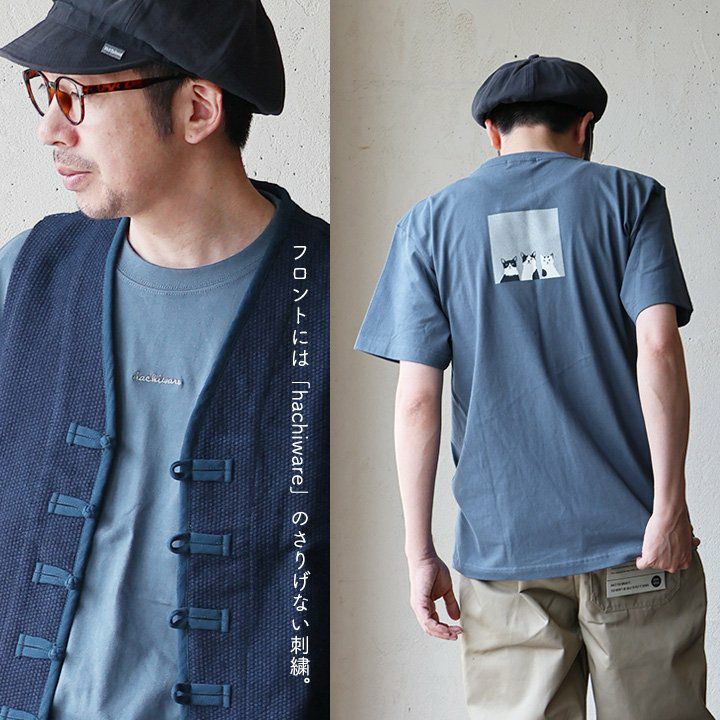 ハチワレ・ナイト・オーケストラ。 【メール便50】PATY パティ tシャツ 半袖 メンズ レディース しっかり 丈夫 コットン 綿100% カジュアル 猫 はちわれ 八割れ猫 バック プリント ユニセックス 軽い すっきり ボックスシルエット 夏 ティーシャツ 和風 レトロ SAIL セイル