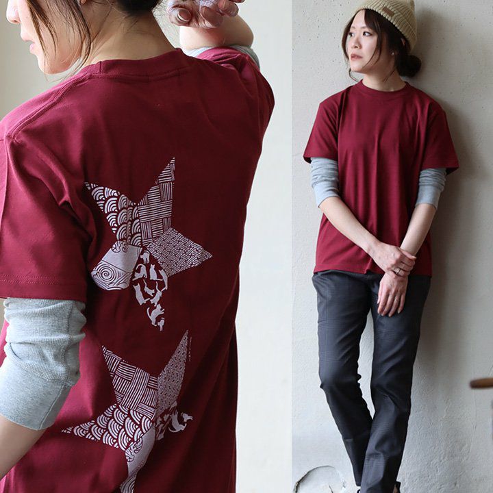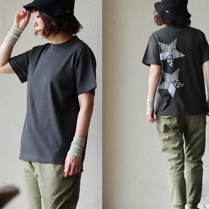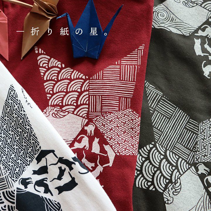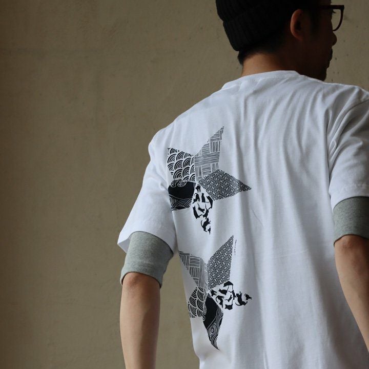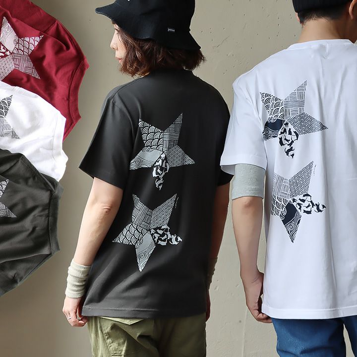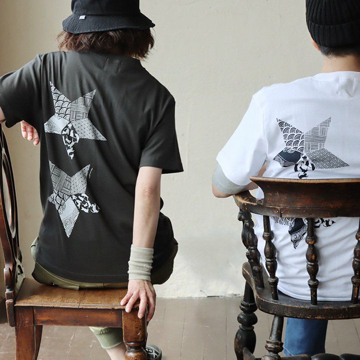 折り紙の星。 【メール便50】 PATY パティ tシャツ 半袖 メンズ レディース しっかり 丈夫 コットン 綿100% カジュアル 星 猫 折り紙 和柄 バック プリント ユニセックス 軽い すっきり ボックスシルエット 夏 ティーシャツ 和風 レトロ TOneontoNE トーン
