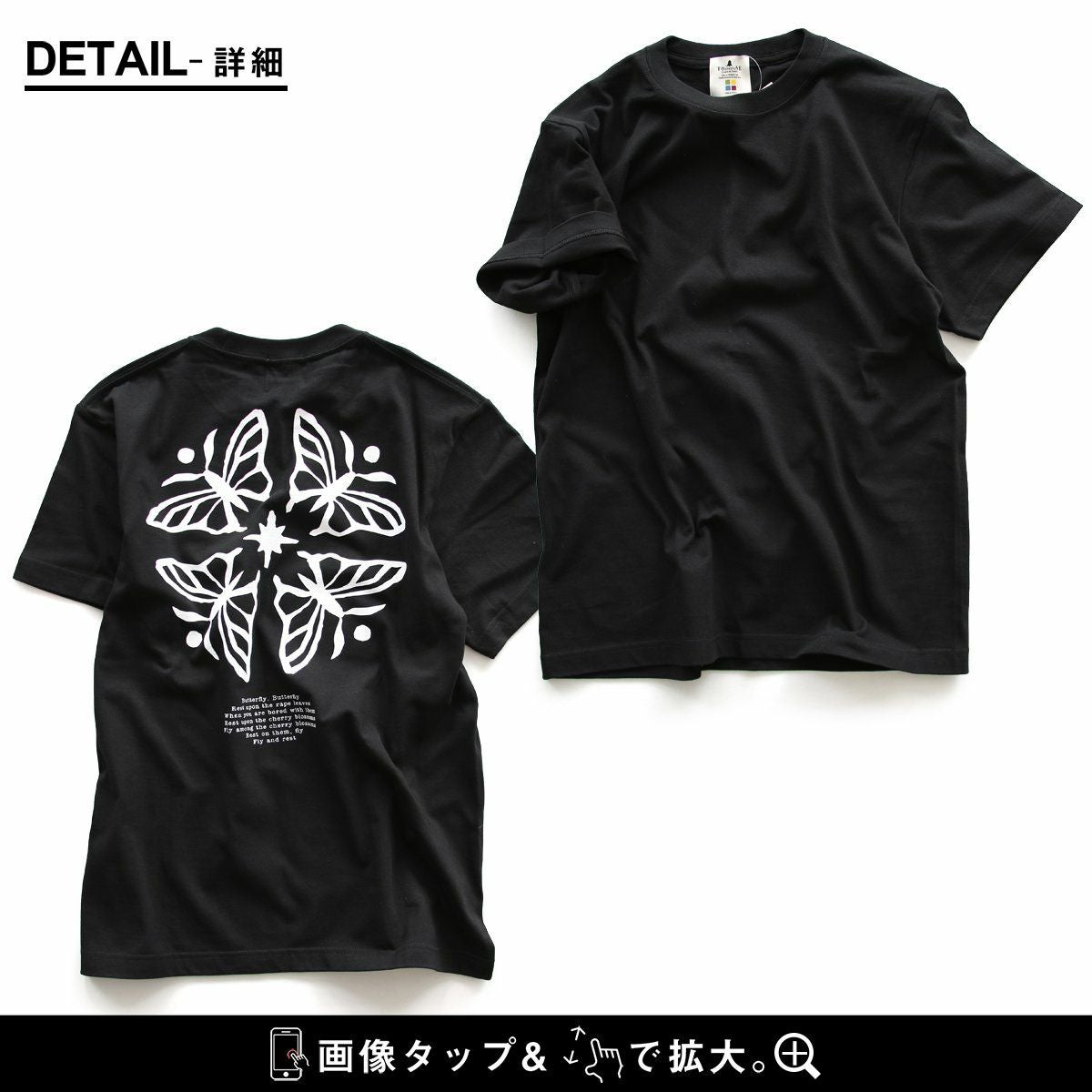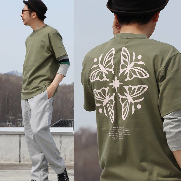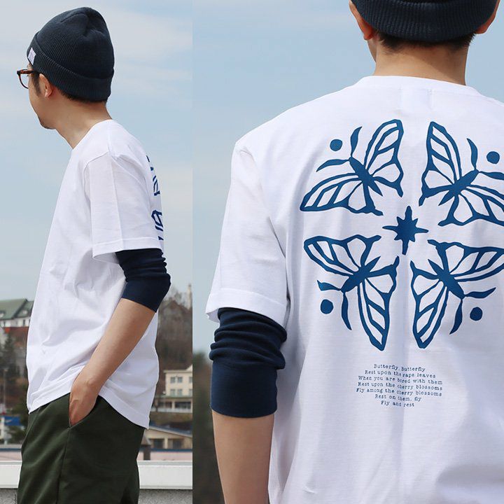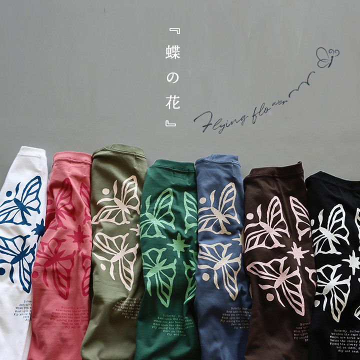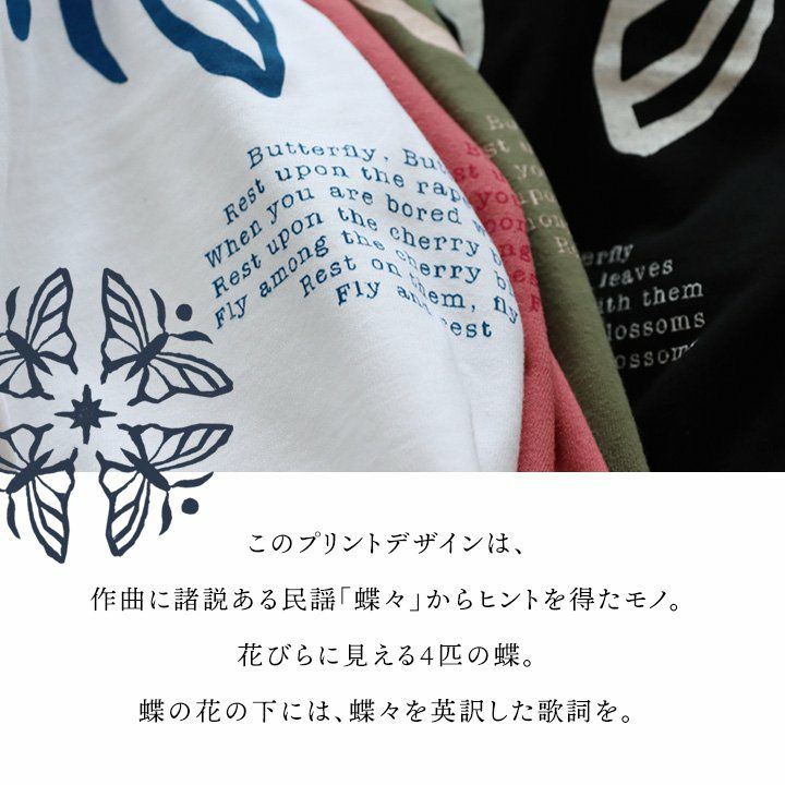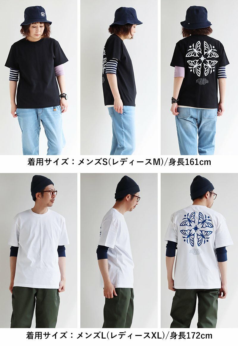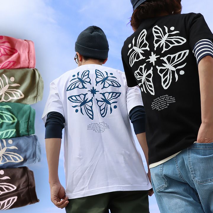 蝶の花。 【メール便50】 PATY パティ tシャツ 半袖 メンズ レディース しっかり 丈夫 コットン 綿100% カジュアル 蝶々 バック プリント ユニセックス 軽い すっきり ボックスシルエット 夏 ティーシャツ 和風 レトロ TOneontoNE トーン