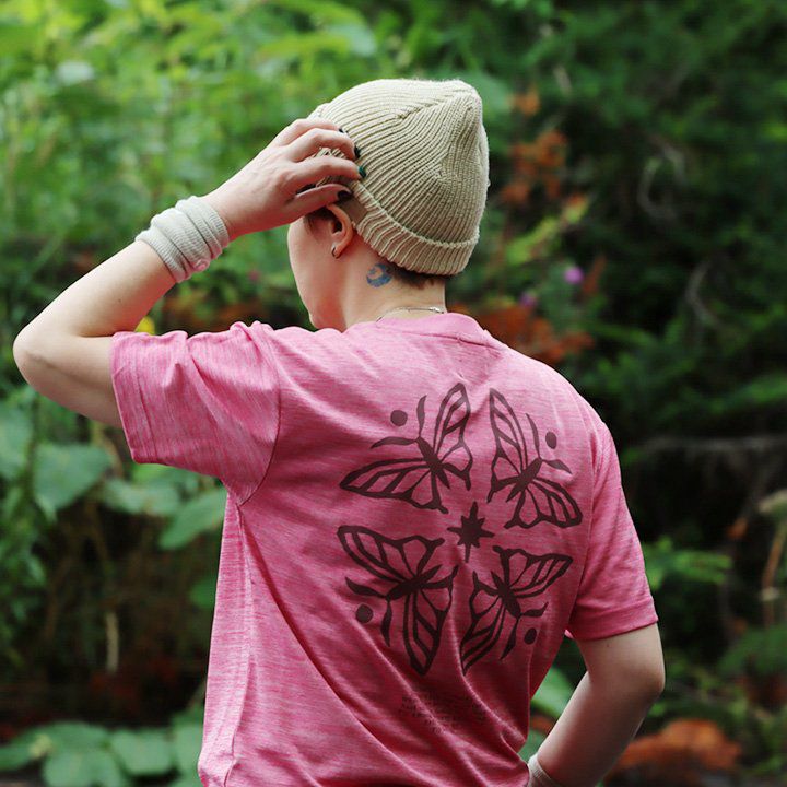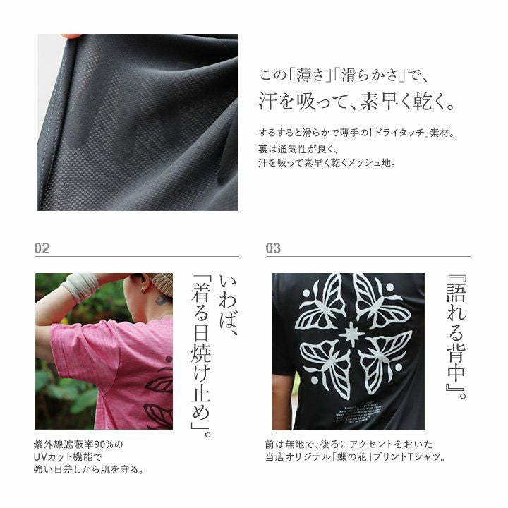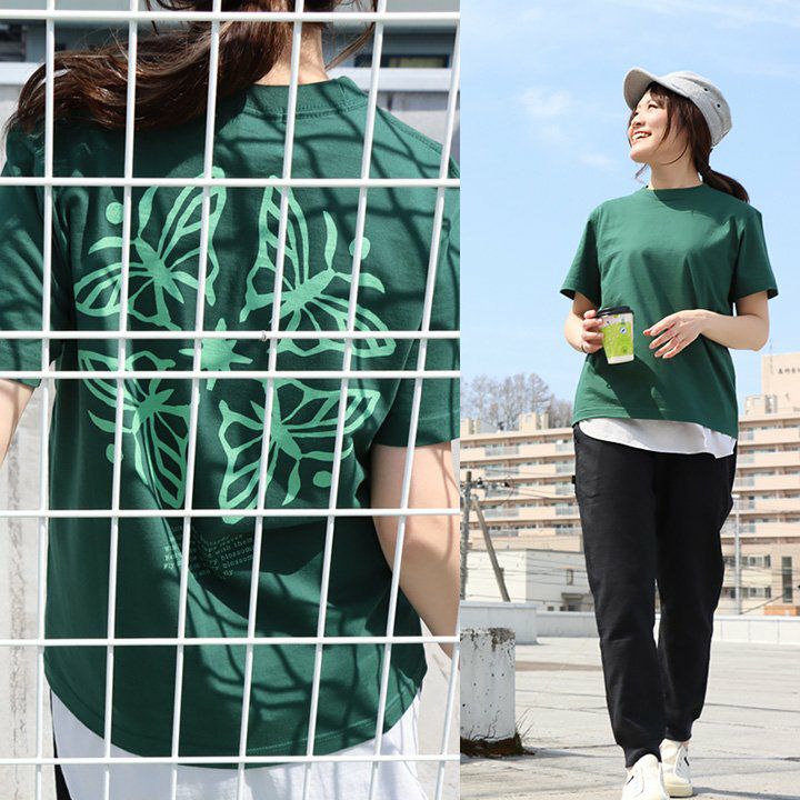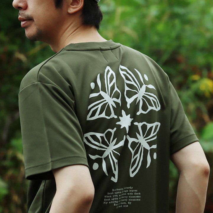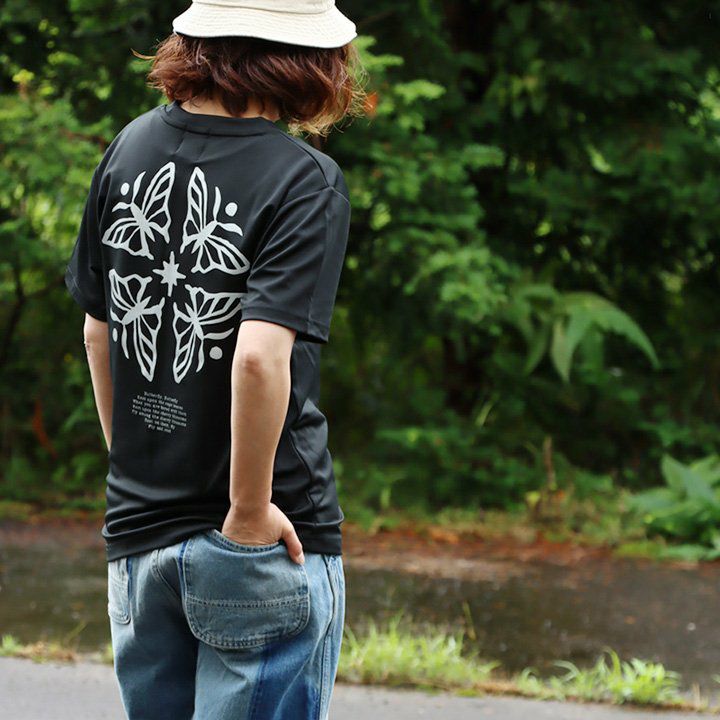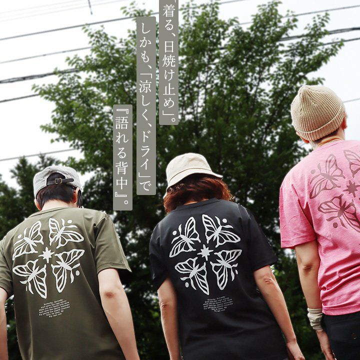 「着る、日焼け止め」。しかも、「涼しく、ドライ」で『語れる背中』。 蝶 tシャツ 半袖 メンズ レディース ラッシュガード uvカット 花 蝶 ちょうちょ バック プリント 吸水 速乾 涼しい 軽い すっきり ボックスシルエット 夏 ティーシャツ レトロ パティ TOneontoNE トーン