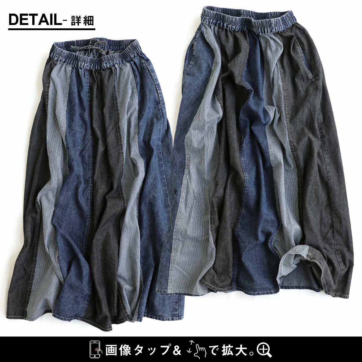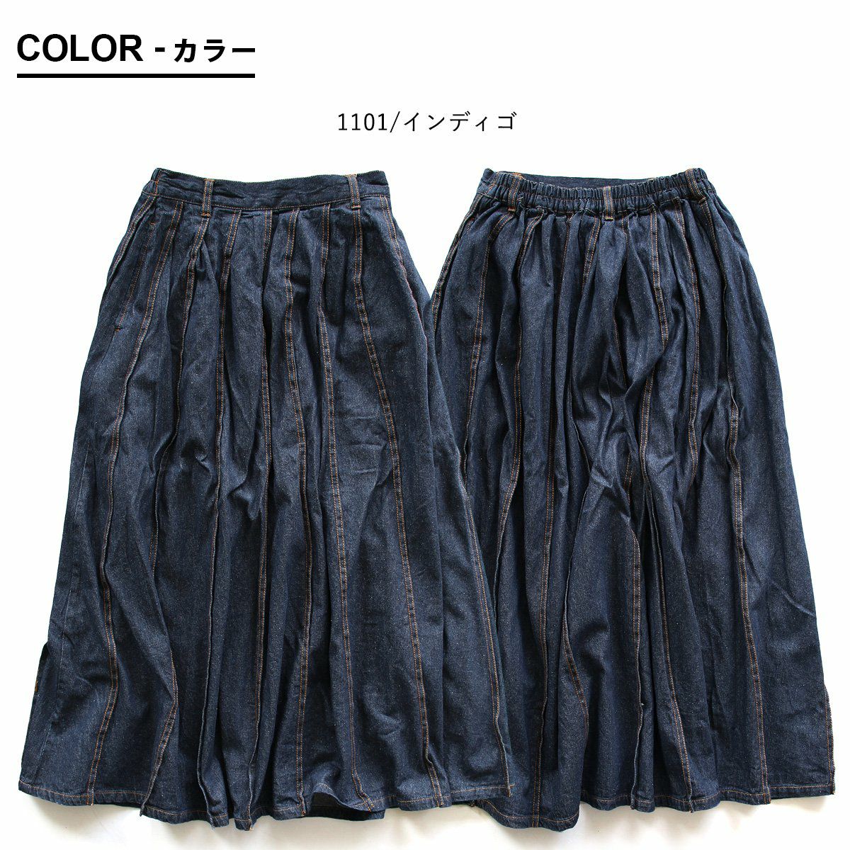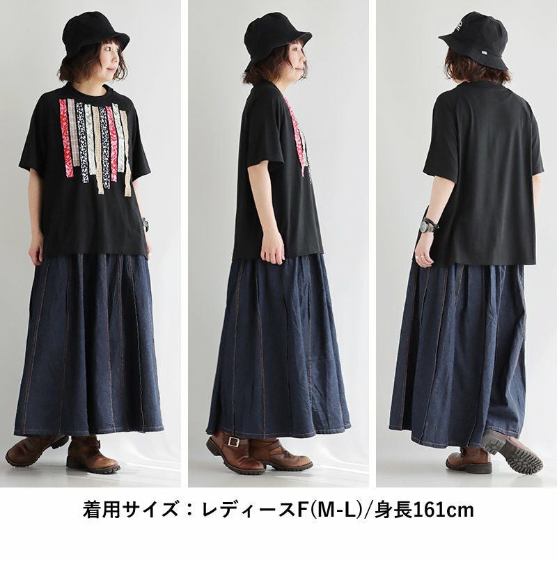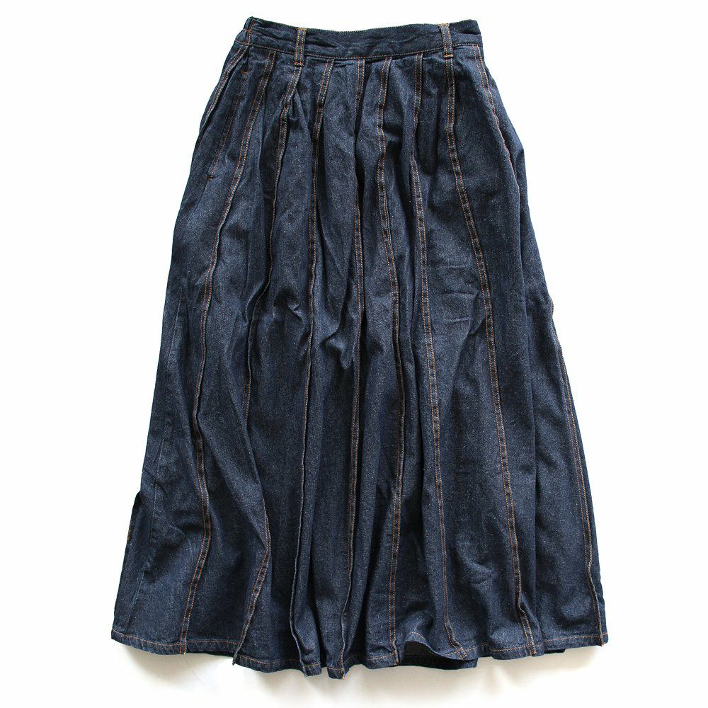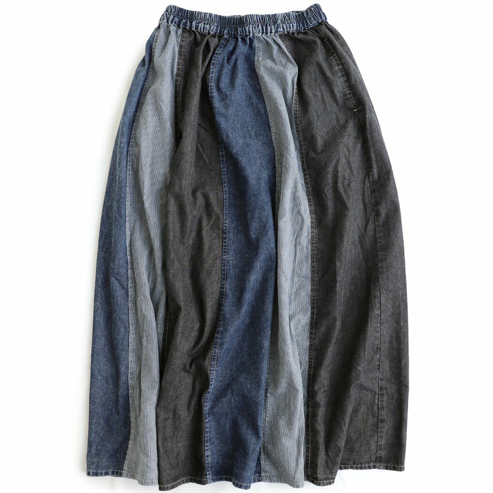 バサっと、見せつけたくなる唯一無二なボリューム感。 マキシスカート レディース スカート ロングスカート デニム ステッチ プリーツ 大きいサイズ マキシ丈スカート ウエストゴム 紐 変形 ボリューム リメイク カジュアル メンズライク パティ BLUETO ブルート
