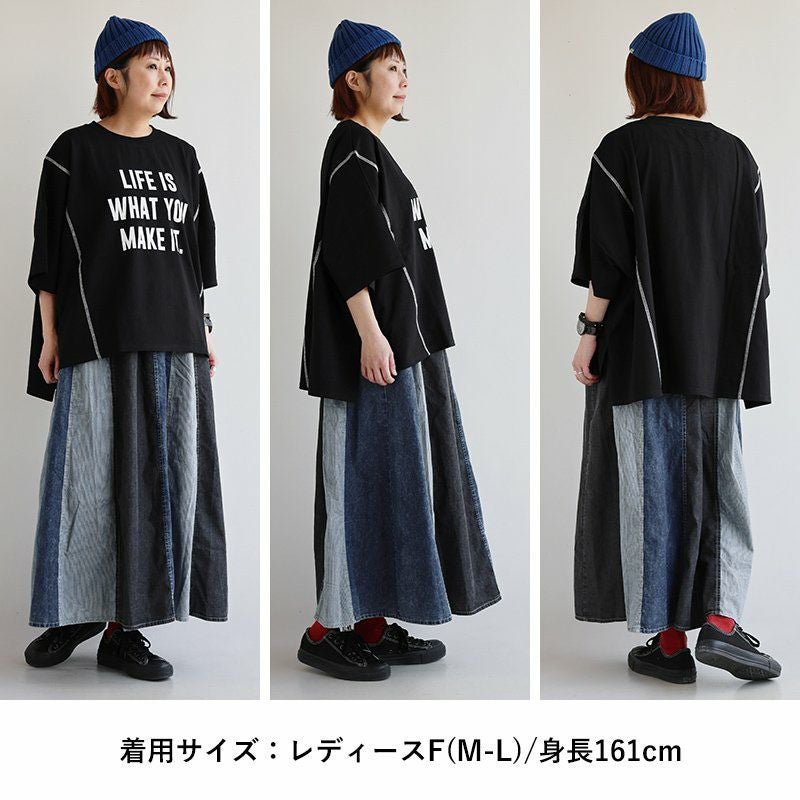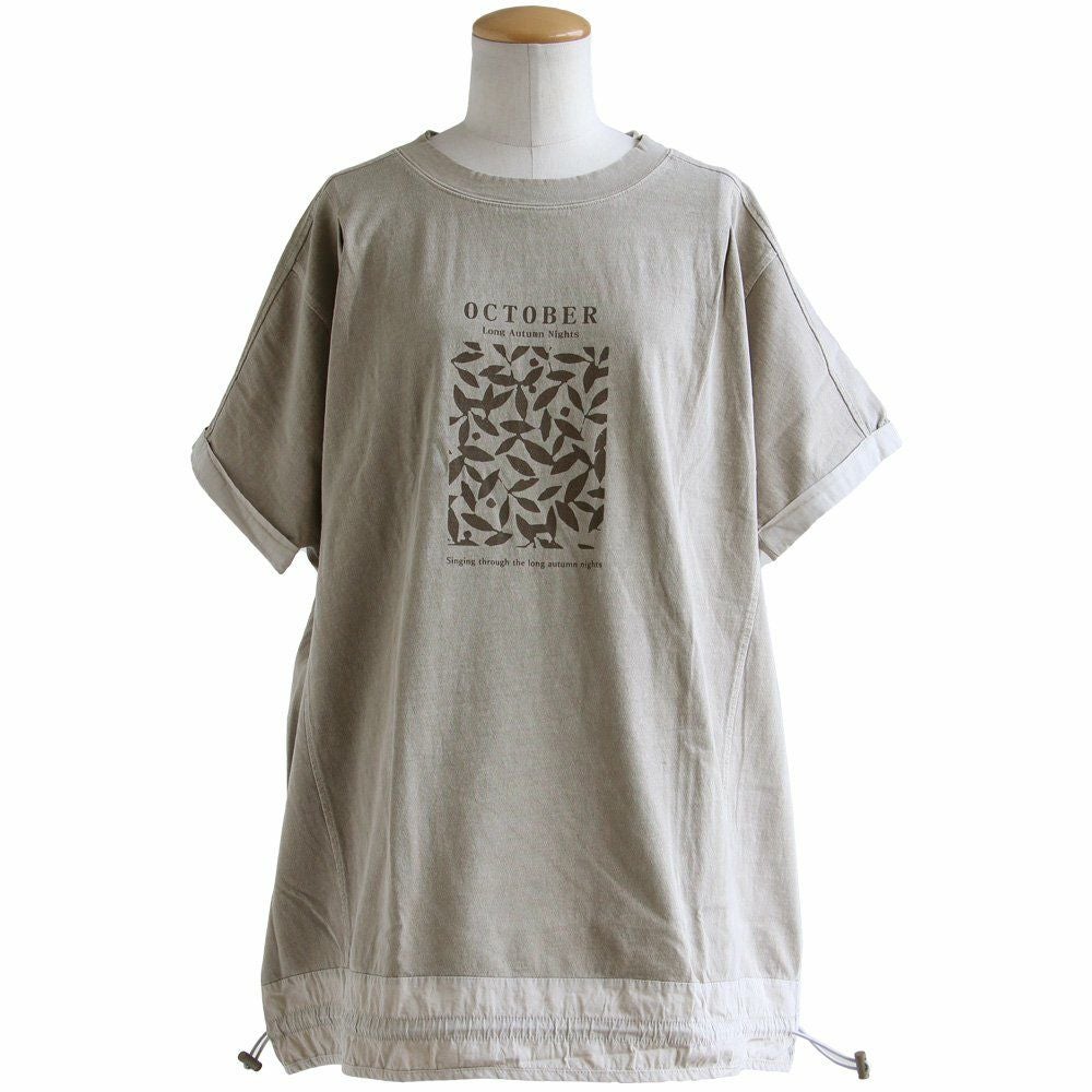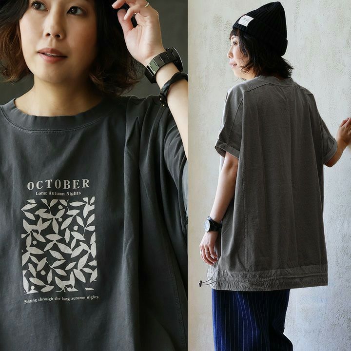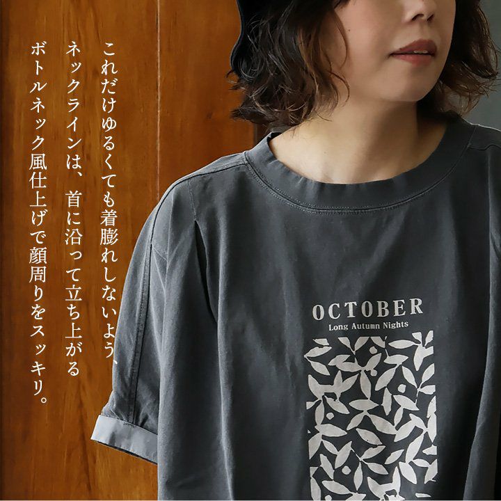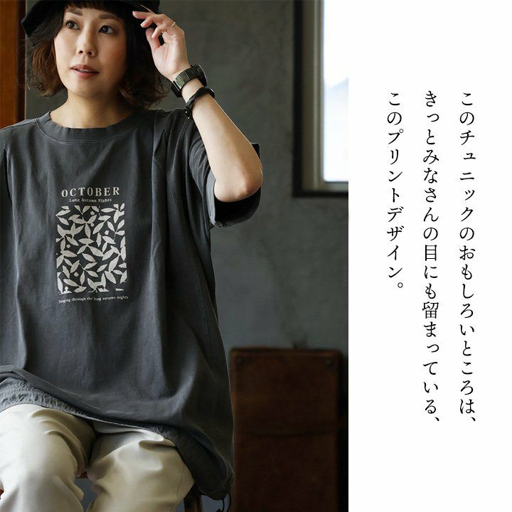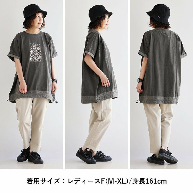「ひとひねり」ある、大人チュニック 。 かっこいい チュニック 着やせ ワイド 五分袖 tシャツ プリント 晩夏 レディース 異素材 切り替え 綿100 コットン 二の腕 お尻 体系 カバー リメイク風 ドルマン tシャツ カジュアル パティ OAR’S オールズ