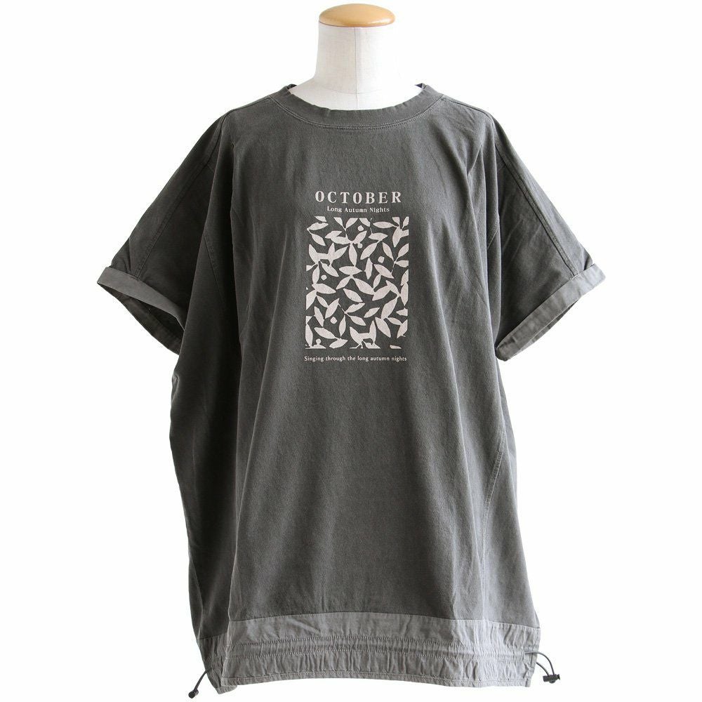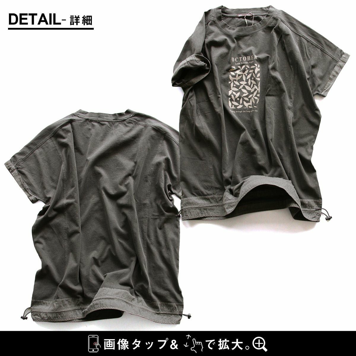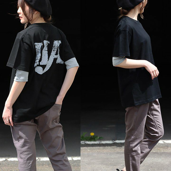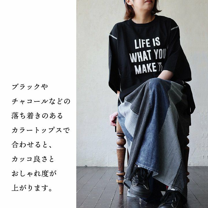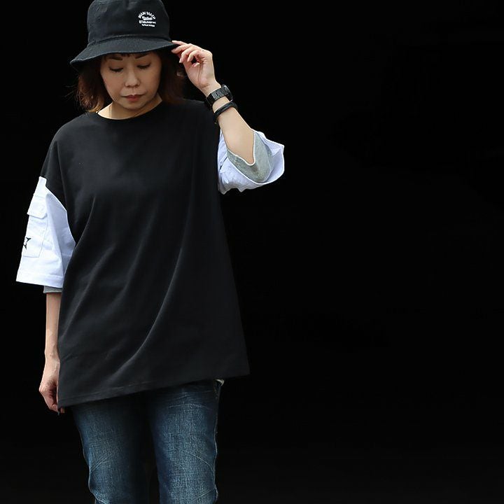 「ひとひねり」ある、大人チュニック 。 かっこいい チュニック 着やせ ワイド 五分袖 tシャツ プリント 晩夏 レディース 異素材 切り替え 綿100 コットン 二の腕 お尻 体系 カバー リメイク風 ドルマン tシャツ カジュアル パティ OAR’S オールズ