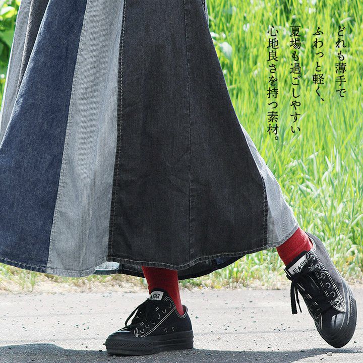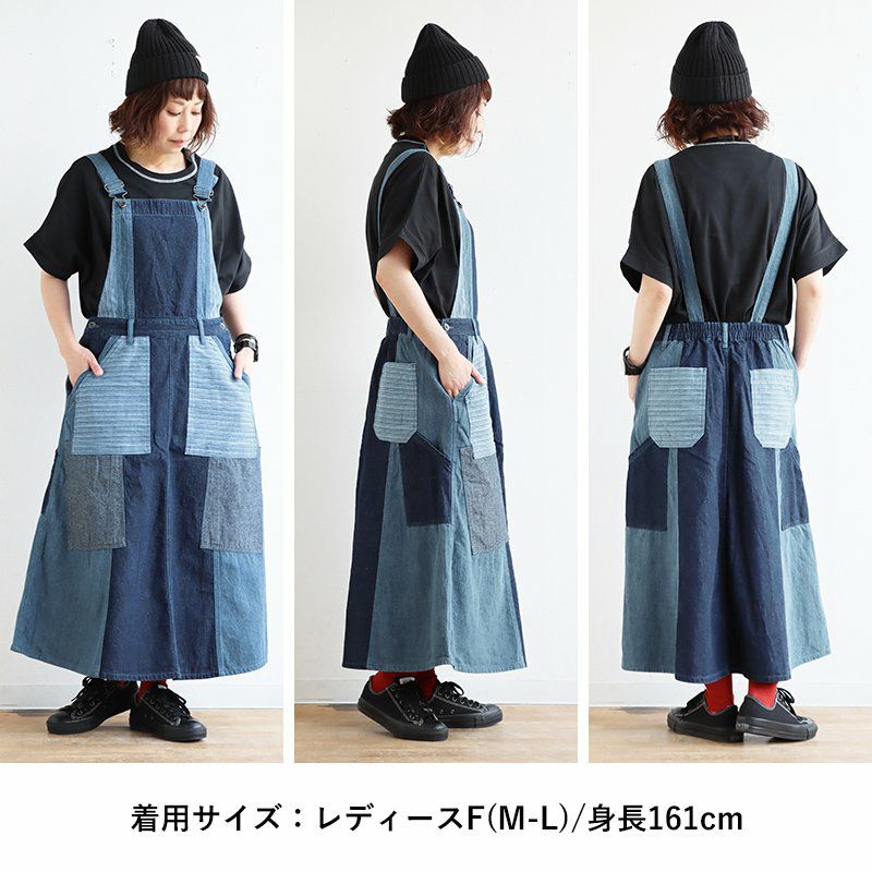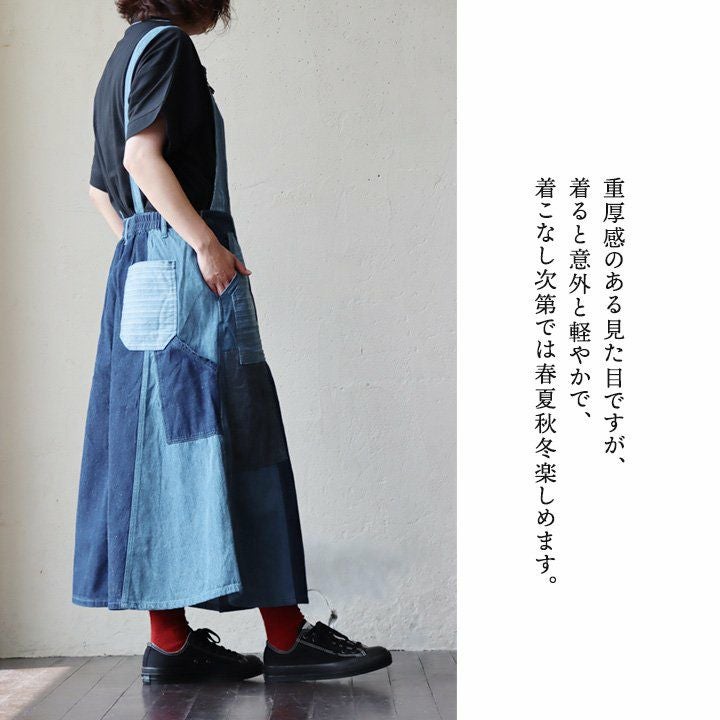 デニム好き的には「これくらい」やってくれなきゃ。 サロペット スカート ゆったり 着痩せ レディース 柔らか 綿100% コットン リメイク 無地 ストライプ おしゃれ 春 夏 秋 冬 重ね着 大人 カジュアル アメカジ ジャンスカ サロペットスカート マキシ ゴム BLUETO ブルート