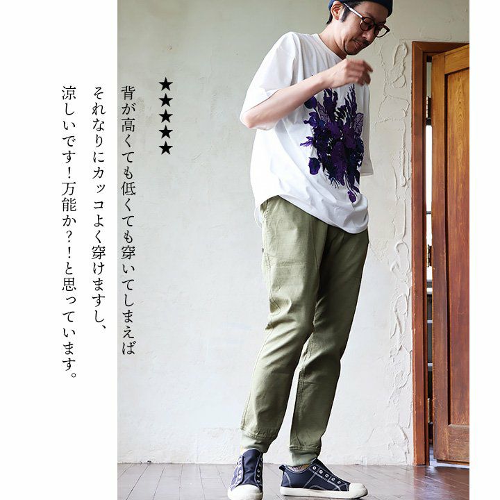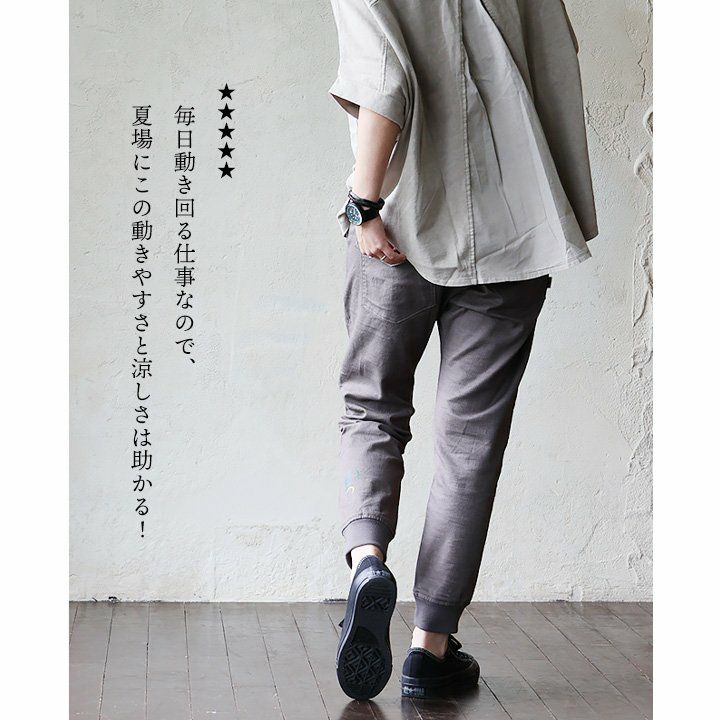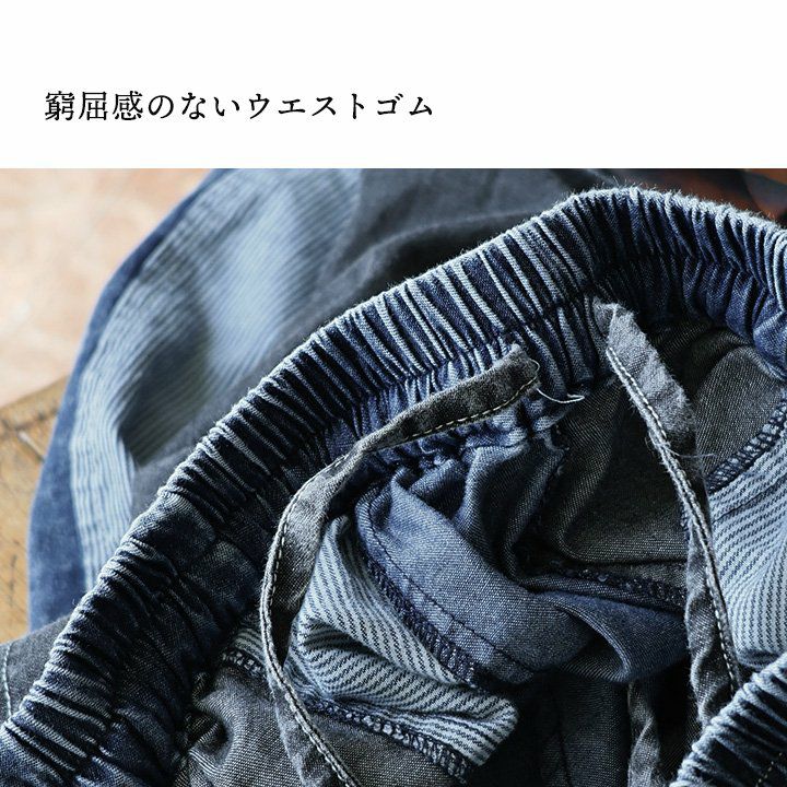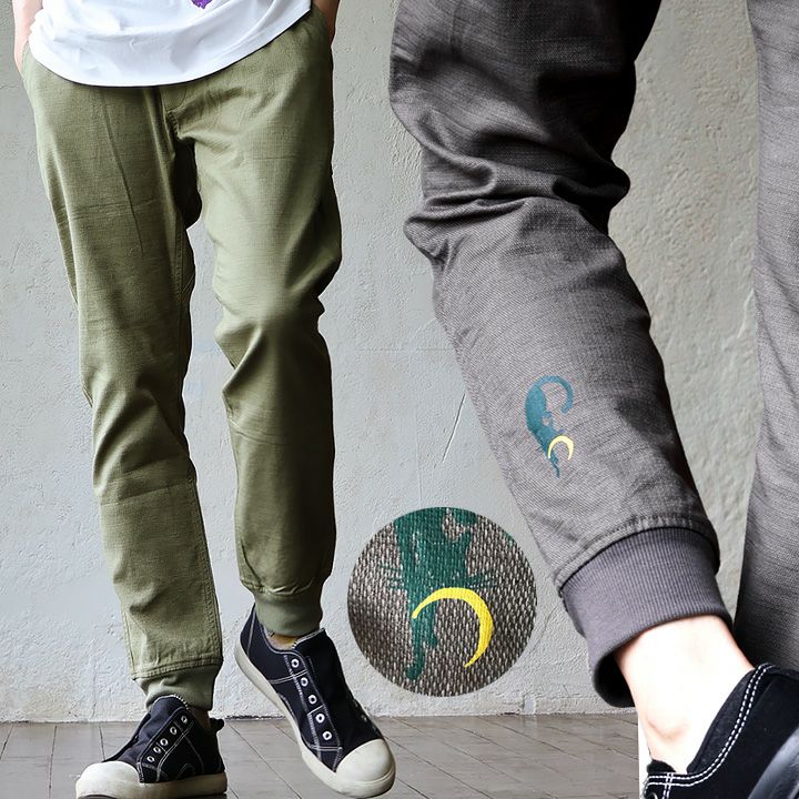 デニムなのに、「軽い」「柔らかい」「楽ちん」「涼しい」。 gym master × Mr.Lumberjack デニム パンツ メンズ レディース 綿100% 薄手 しっかり 丈夫 ウエストゴム 配色切り替え 裾 リブ ポケット付き ワンポイント プリント すっきり 細見え スリム テーパード カジュアル 軽い パティ コラボ