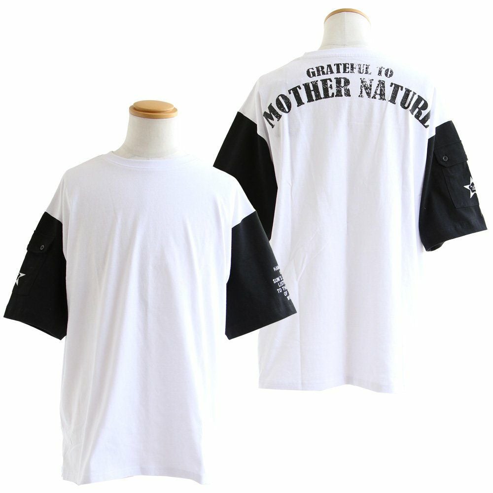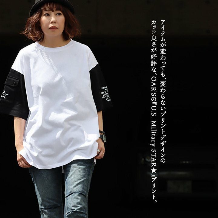 U.S. Military STAR★ 【メール便50】 tシャツ 五分袖 アメカジ メンズ レディース カッコいい 綿100% コットン しっかり 丈夫 ワイド すっきり 着痩せ 重ね着 二の腕 お尻 カバー 半袖 ミリタリー ポケット 星 ロゴ プリント パティ OAR’S オールズ