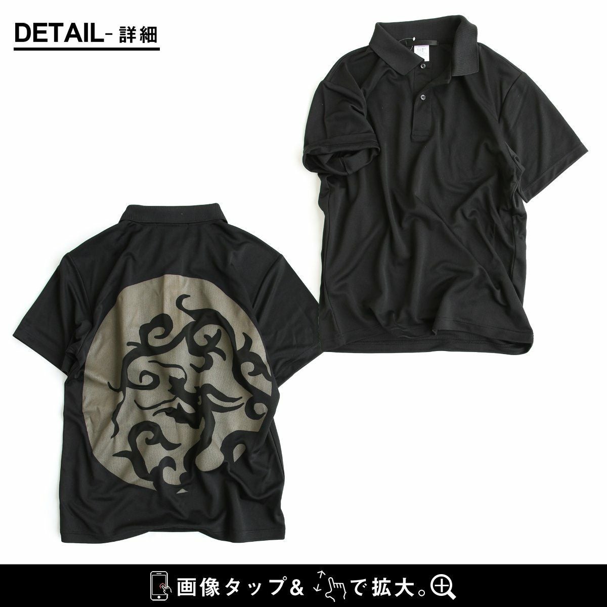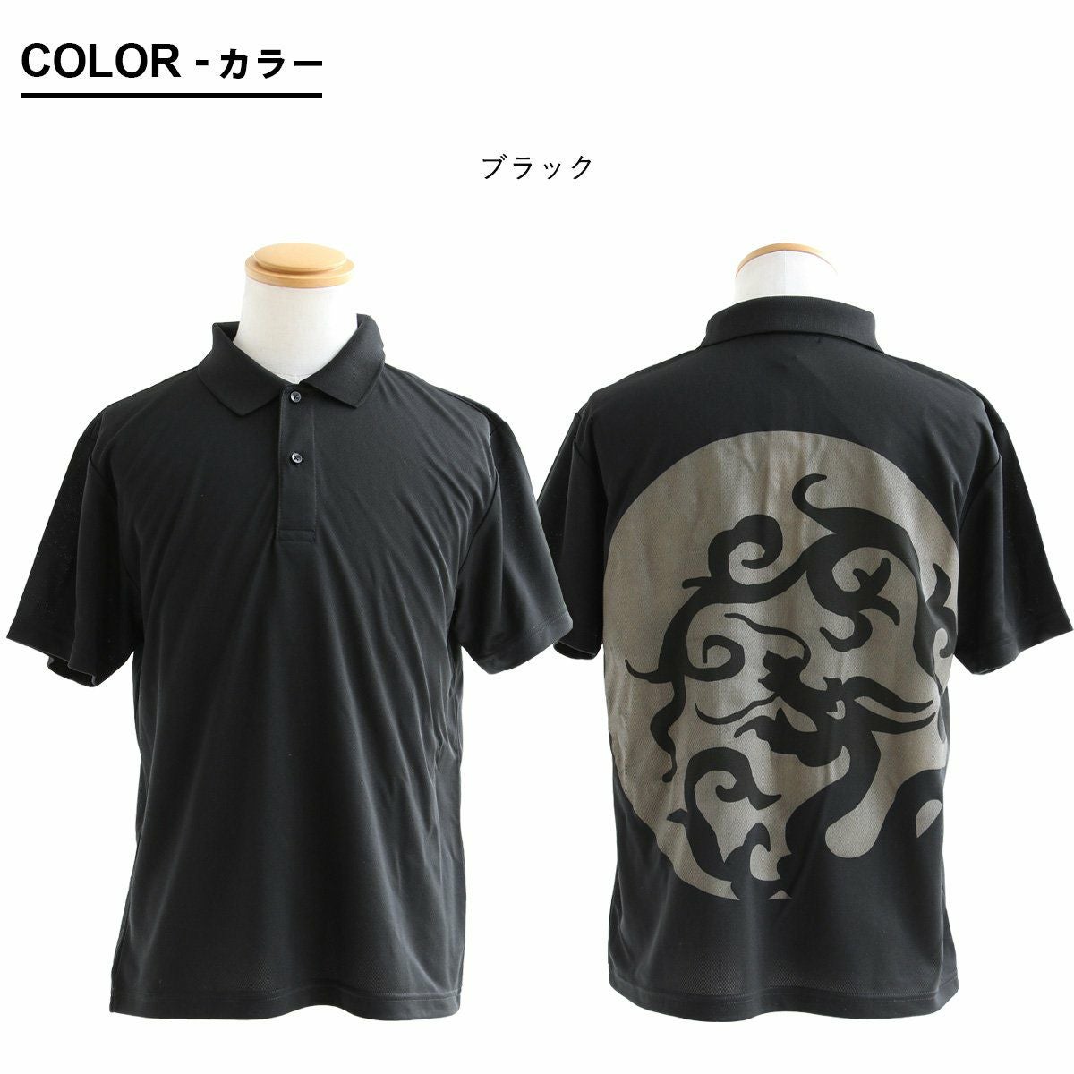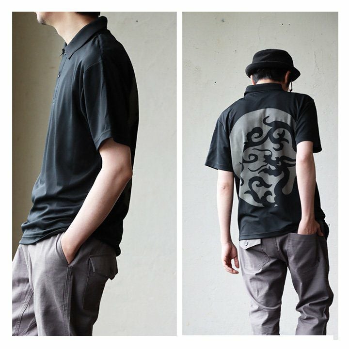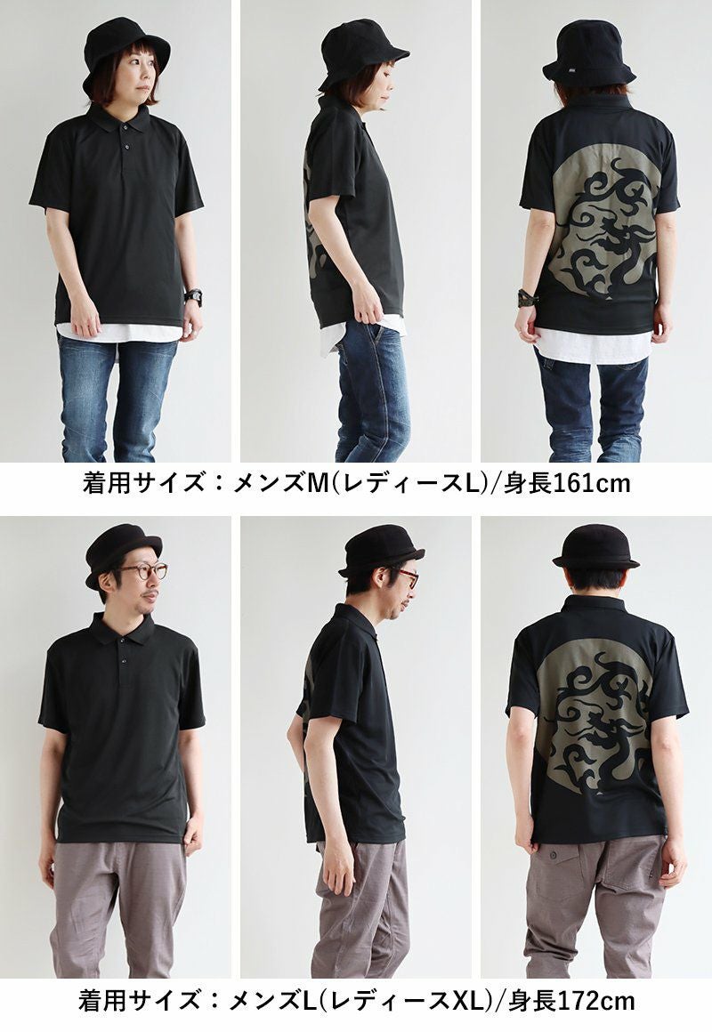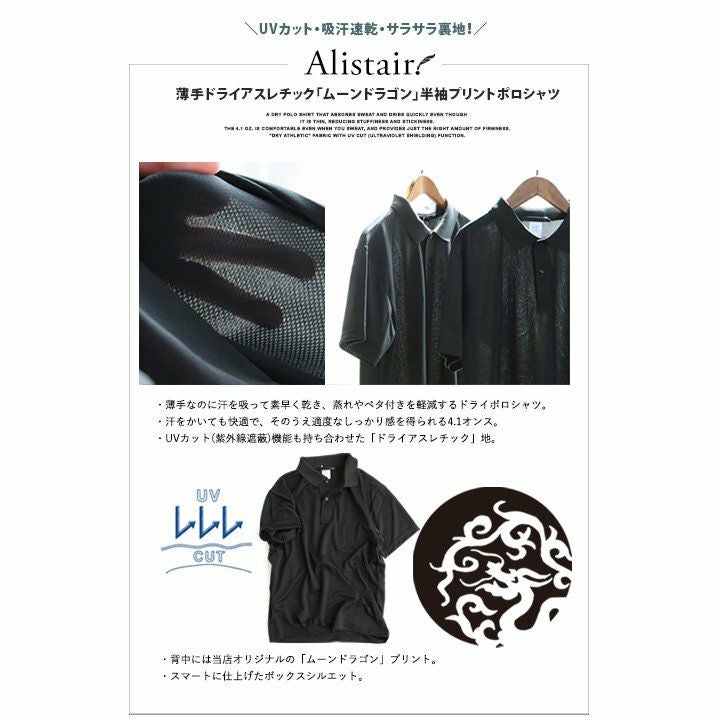 汗をかいても変わらず快適な「夏の黒」! ポロシャツ 涼しい メンズ レディース ドライ 夏 おしゃれ 着やせ バック プリント 月 ドラゴン 半袖ポロシャツ 軽量 速乾 UVカット 吸汗 薄手 ワンポイント ロゴ刺繍 スッキリ 体系 カバー 重ね着 カジュアル パティ ALISTAIR アリステア