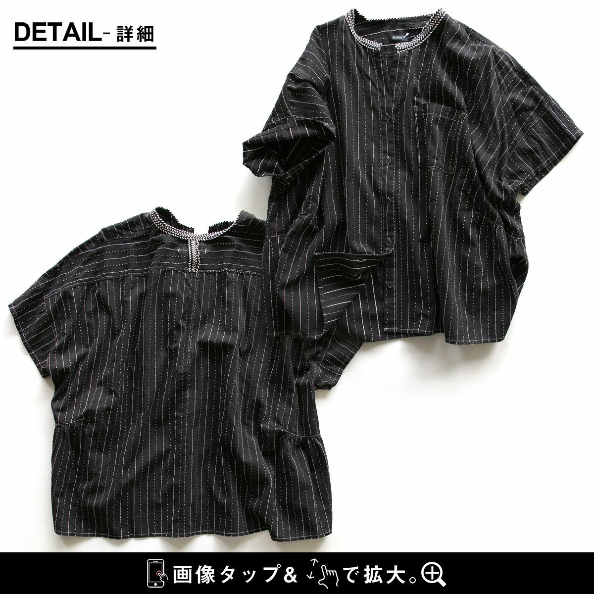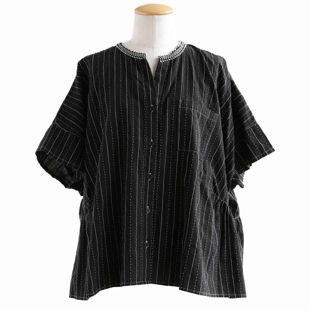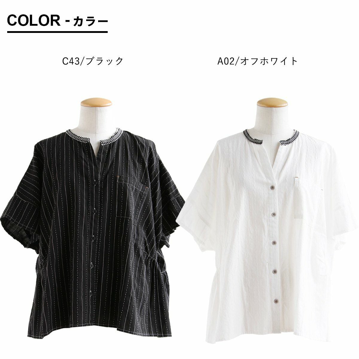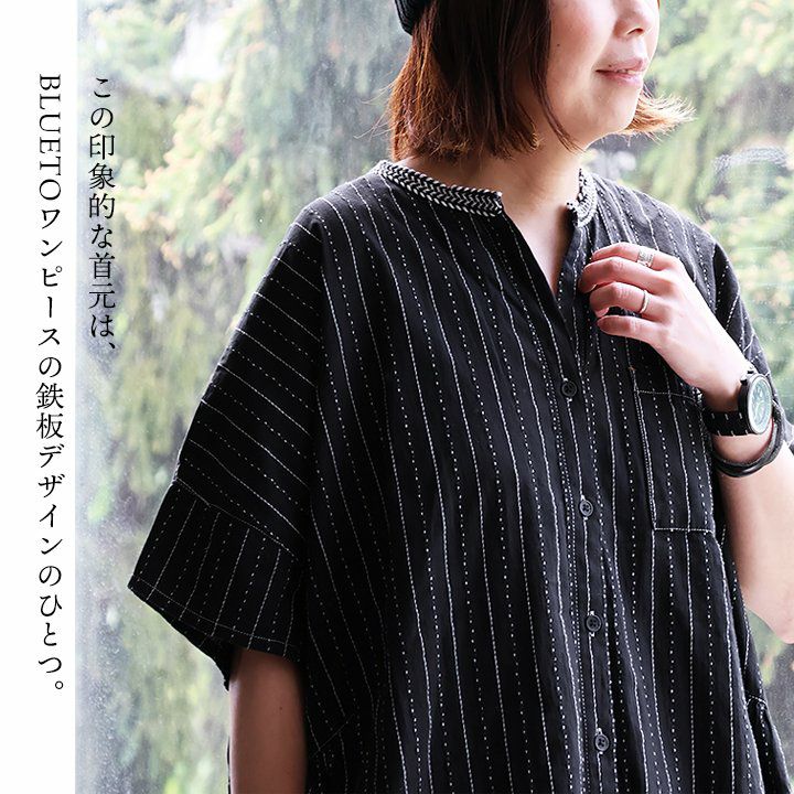 年相応に、どこへでも似合う『品のある』5分袖シャツ。 シャツ 5分袖 レディース スタンドネック ハイネック スキッパーネック 刺繍 アクセント 綿混 ドビー織り 薄手 軽い 涼しい ワイド 着痩せ 軽い カジュアル シンプル おしゃれ 夏 パティ BLUETO ブルート